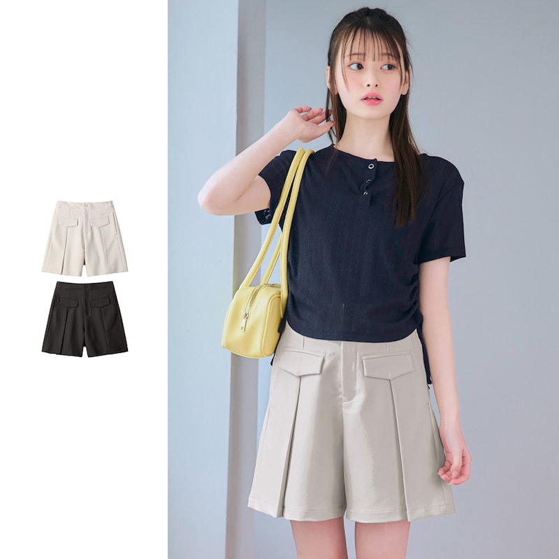 フラッププリーツショートパンツ(ウエスト調節可) 【子供ズボン】