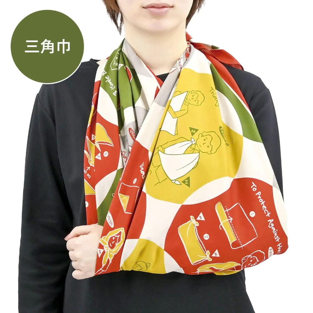 ●三角巾や防災頭巾、防寒着など多様に変化して災害時の“困った時”を手助けしてくれます