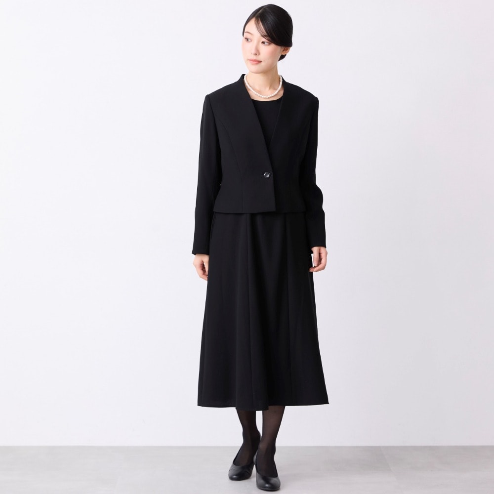 長め丈のワンピースが付いたブラックフォーマルアンサンブル