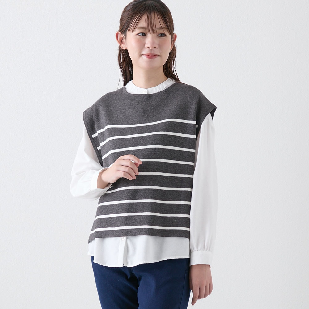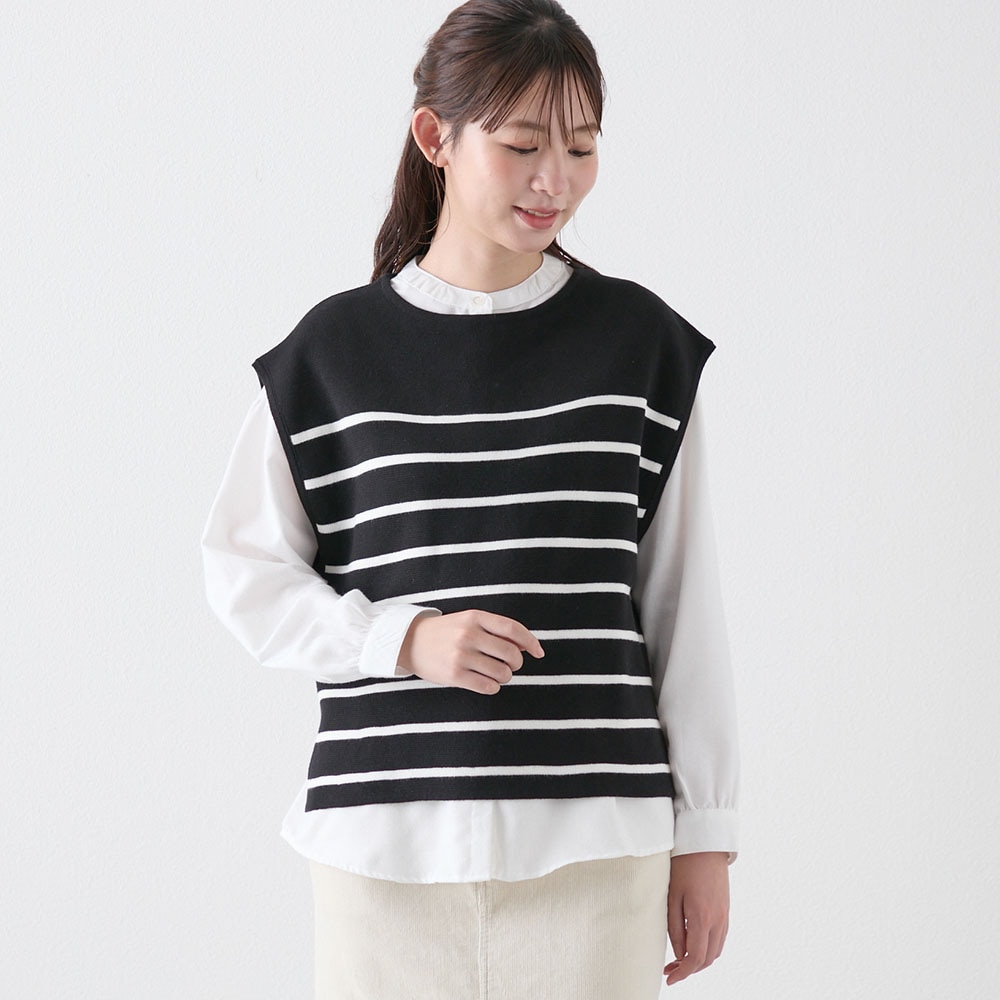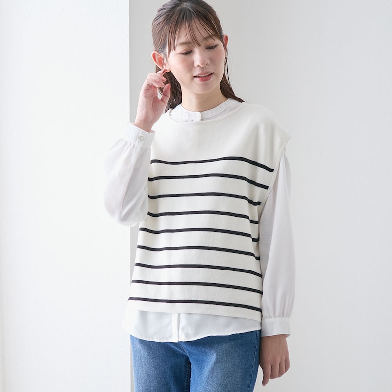 朝の準備が楽ちんに♪ニットベスト×ブラウスのセットアイテム