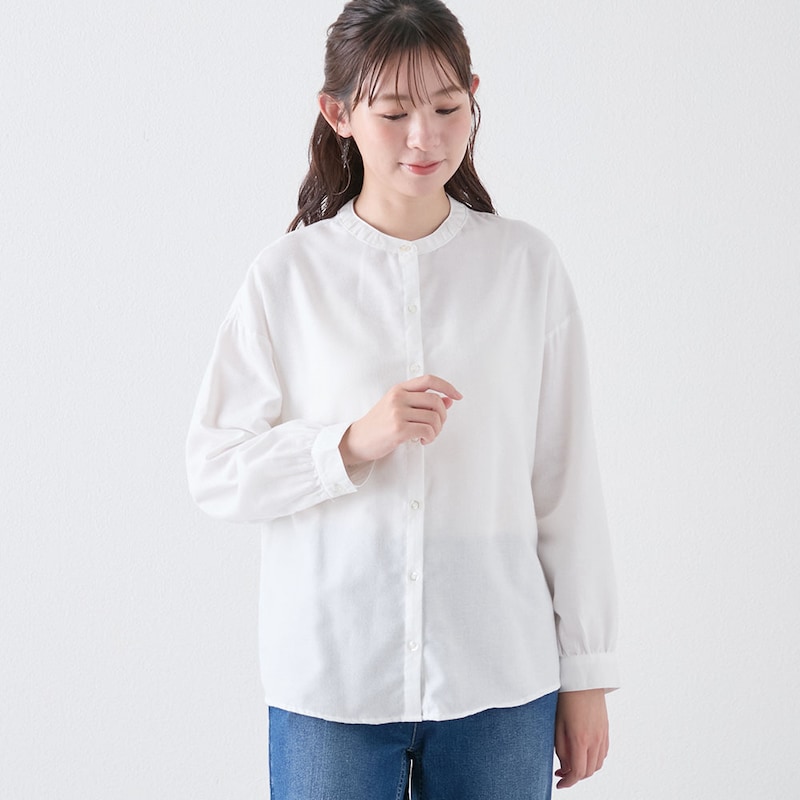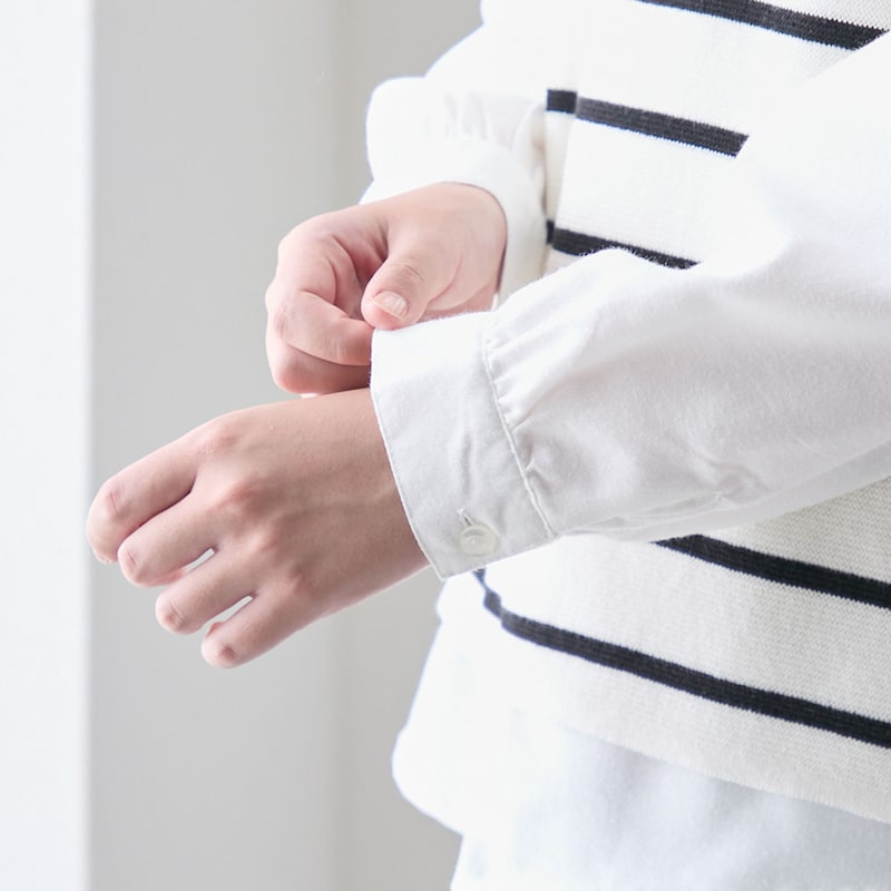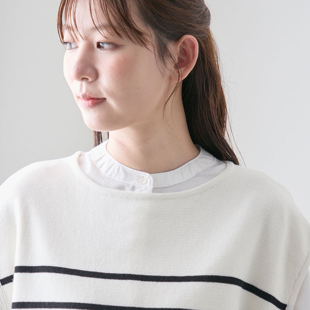 綿ニット×ブラウスのアンサンブル