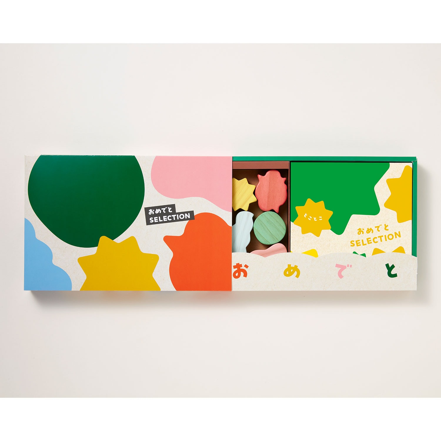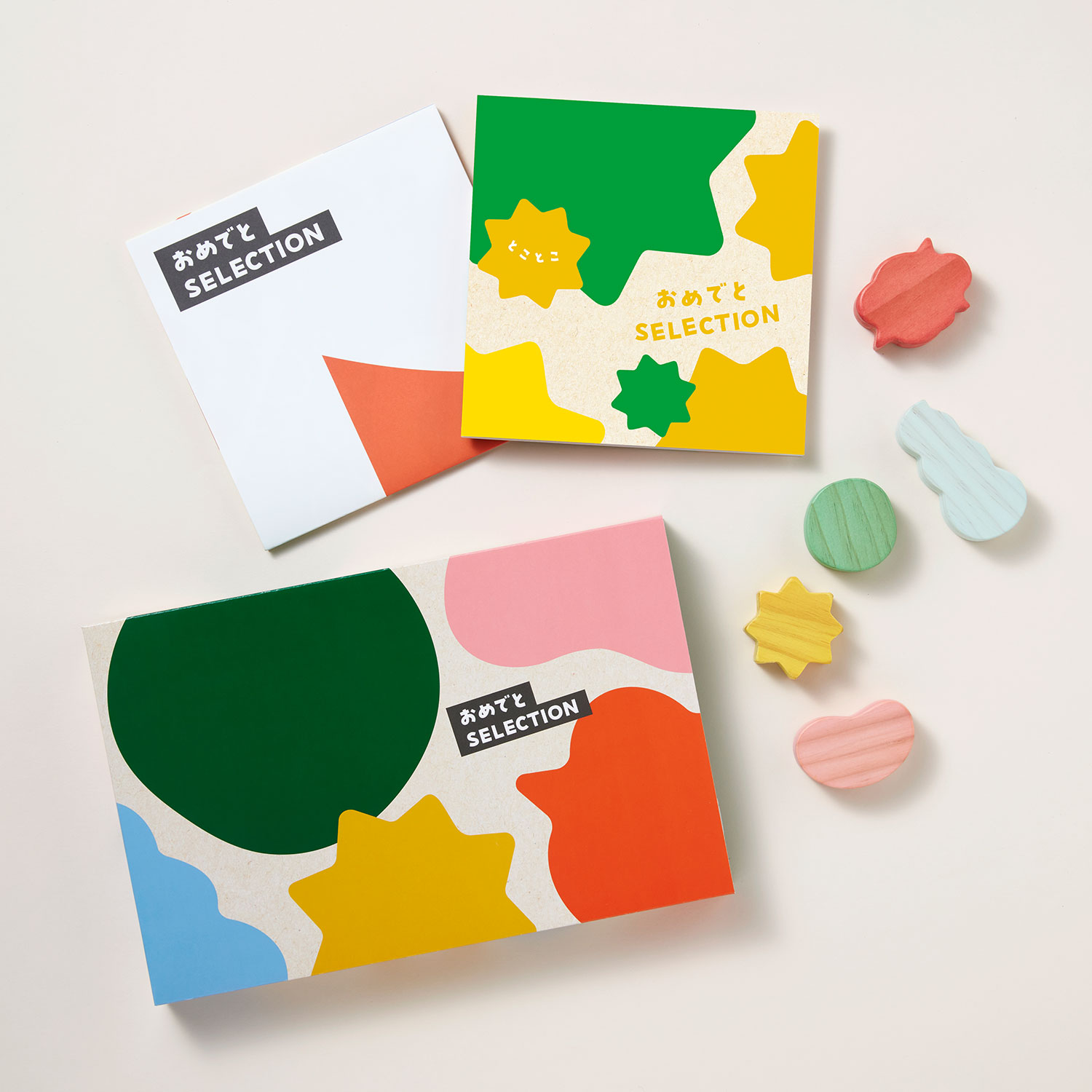 『おめでとセレクション』は、出産祝いやベビーのお誕生日プレゼントにぴったり。知育遊びを促すオリジナルのおもちゃ付きで「貰った瞬間から嬉しい」ギフトカタログです。オノマトペがモチーフのポップでかわいいデザインと、「ベビーを迎えたばかりのママとパパが本当にほしいもの」「子どもが笑顔になるもの」を集めた商品ラインナップも魅力的な、ベビーギフトの新定番です。
