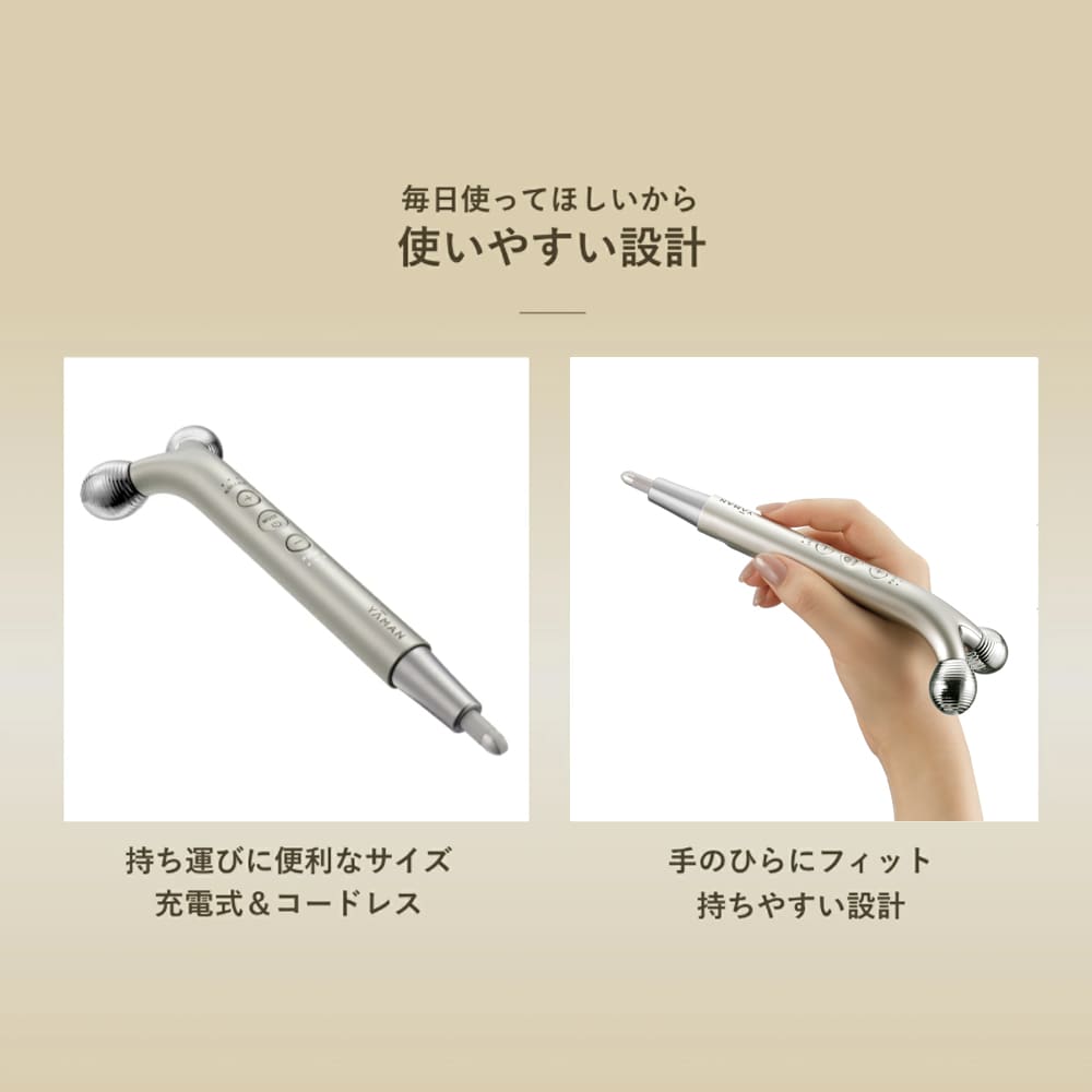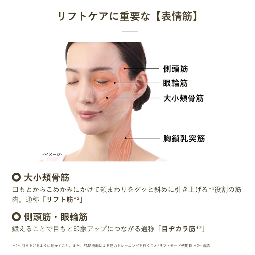 硬くなりがちな表情筋に心地よい刺激でアプローチする、リフトケア(※2)特化型美顔器です。