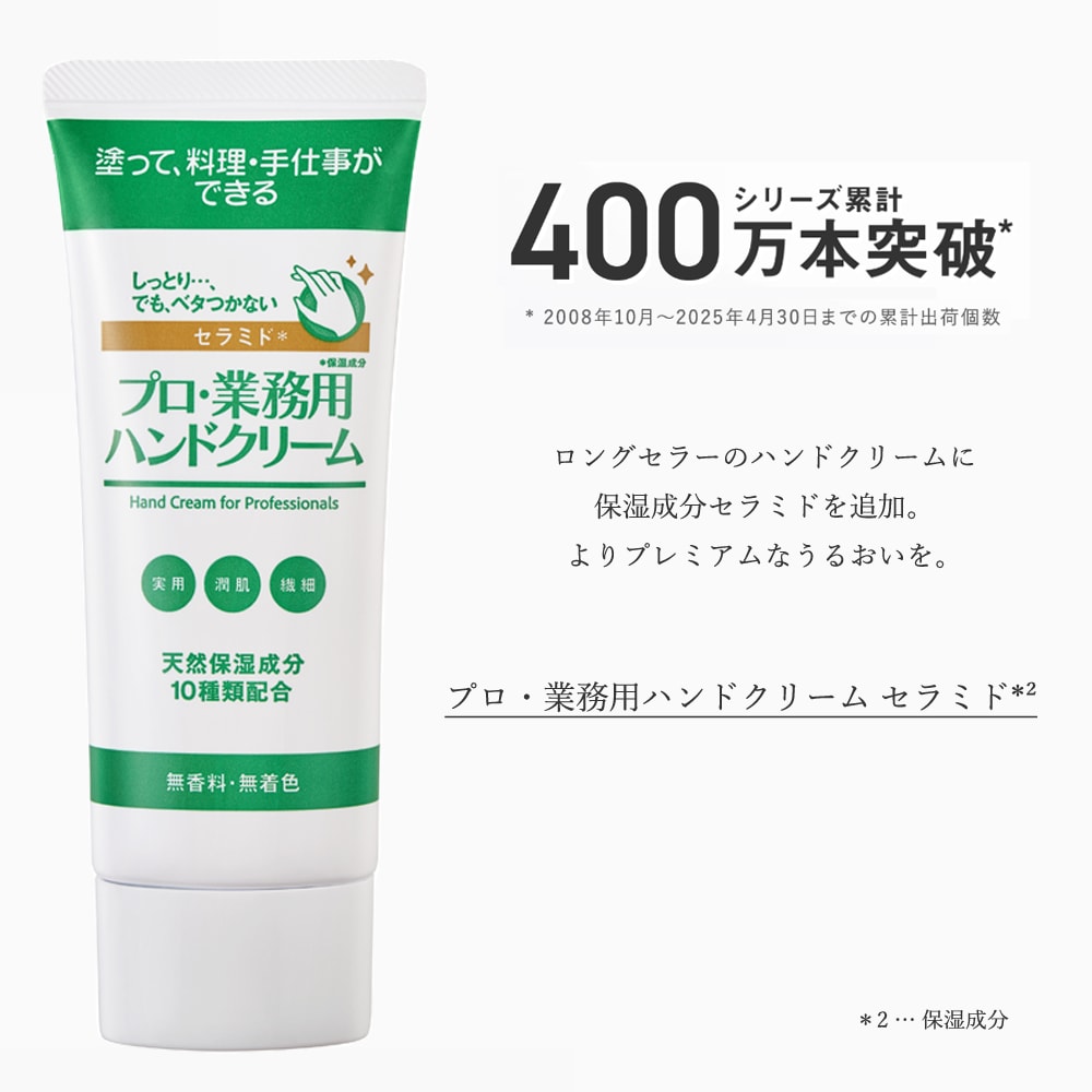 大人気「プロ・業務用ハンドクリーム」のラインナップに、セラミドをはじめとする保湿成分を配合したタイプが仲間入り!
