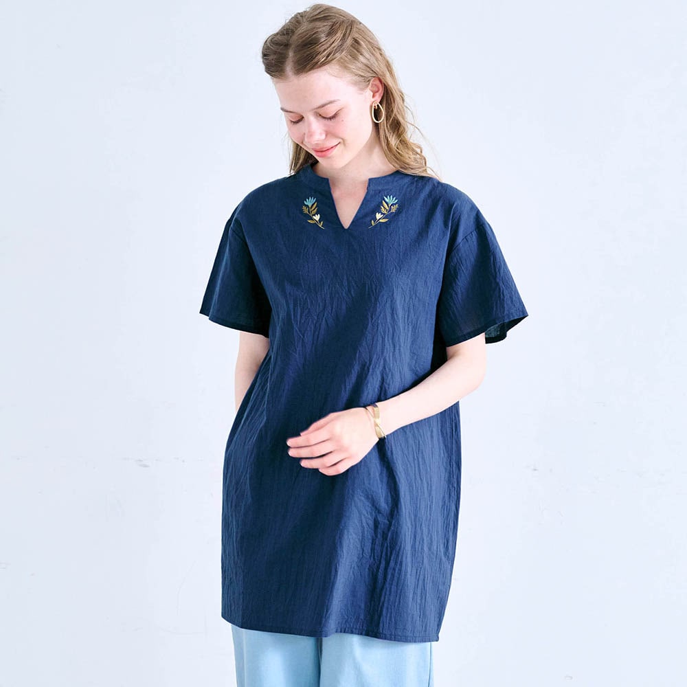 首元がきれいに見えるスキッパーチュニック/甘い人生 「ミニラボ」