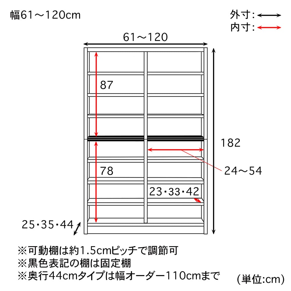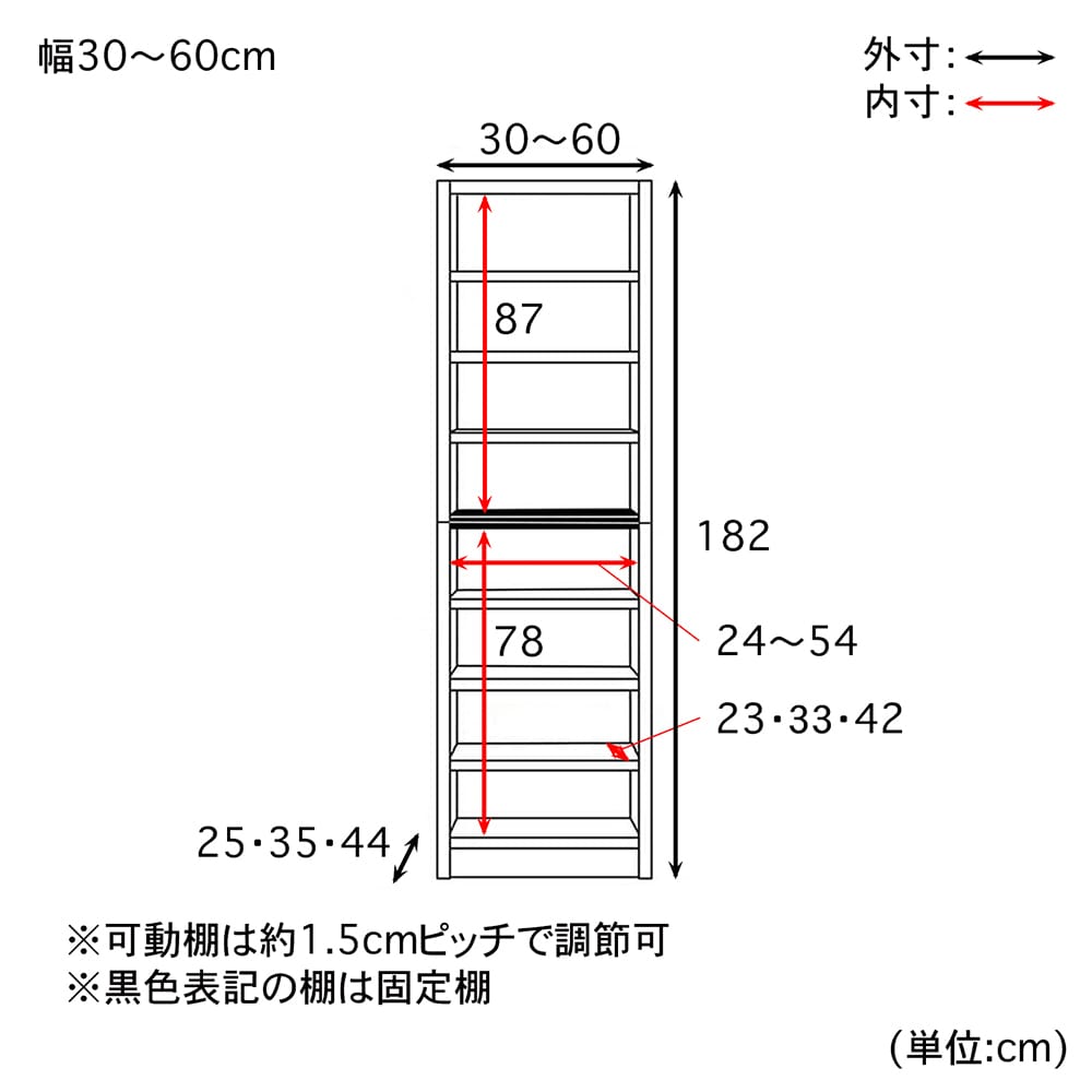 【幅1cmピッチサイズオーダー】本棚・壁面オープンラック [日本製]<高さ182cm>