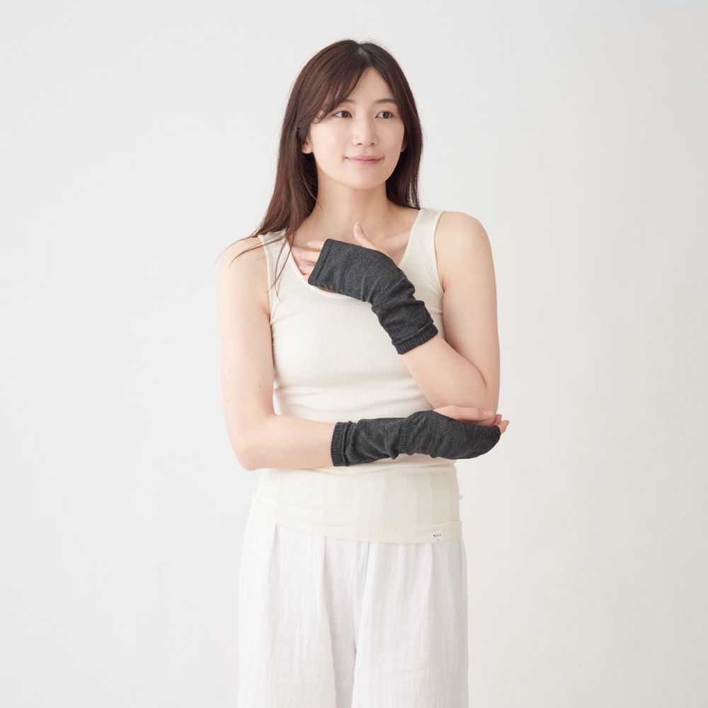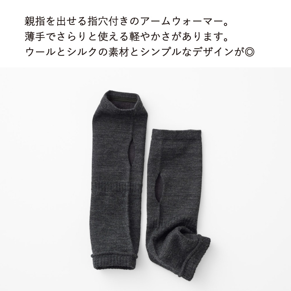 「さらっと素材で、寒さを防ぐ」ウールとシルクの指穴付きアームウォーマー[日本製]
