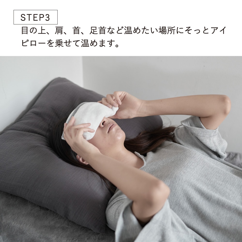 STEP2:毛布ケースに入れて目の上、肩、首、足首など温めたい場所に当てます。