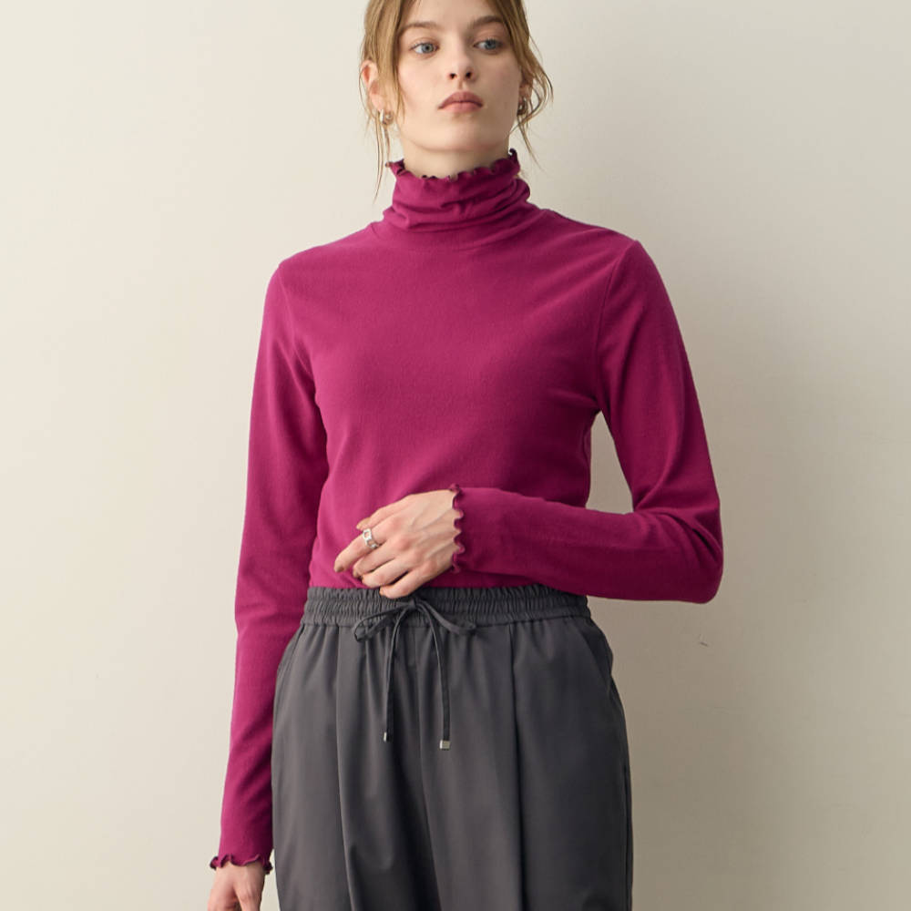 厚手ではないのに温かい。手触りしっとりなめらかです。首周りチクチク気に入なるタイプですが全く気にならず着心地も良かったです。もう一枚色違いを買いたいです。