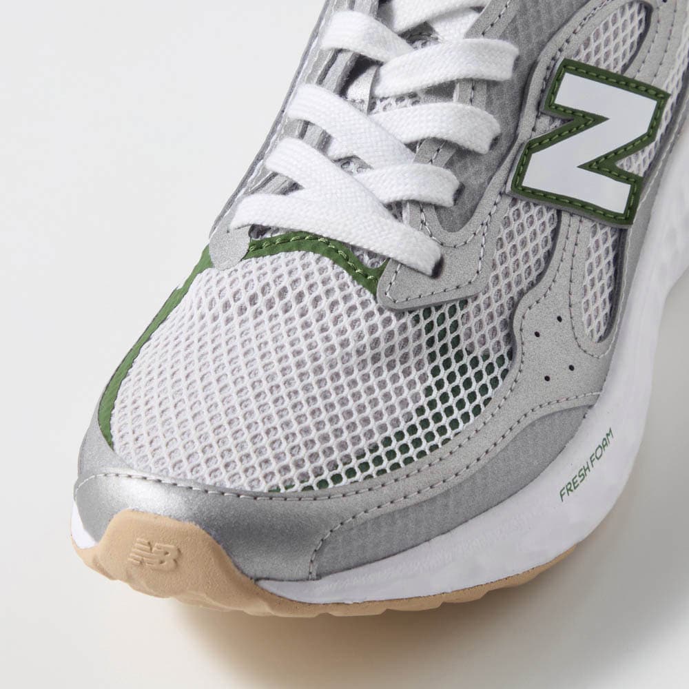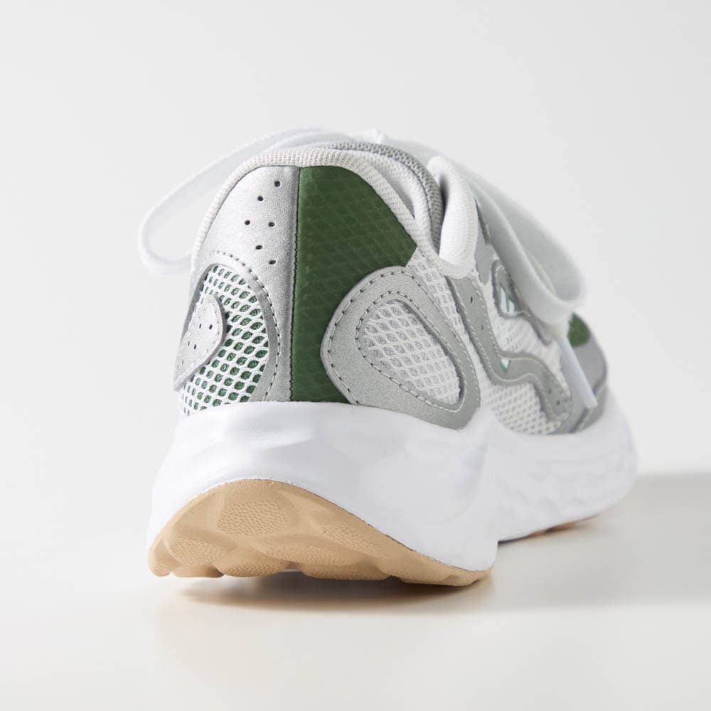 23.5cmで2Eの私でストッキングでの履いた感じで24cmがきつくもなく、ゆる過ぎることなく少し余裕のあるサイズです。普通の厚さの靴下なら丁度いい感じで履けます。フカフカして歩き心地もいいです。これからの春夏活躍しそうです!シルバーでグリーンがアクセントになっていて、カッコイイです!
