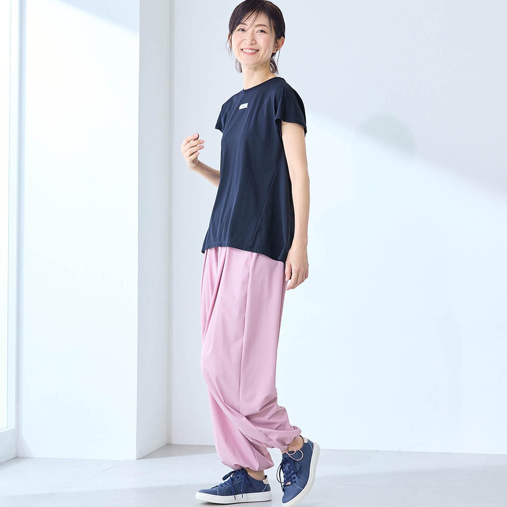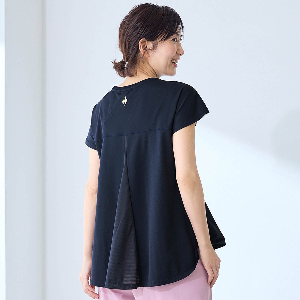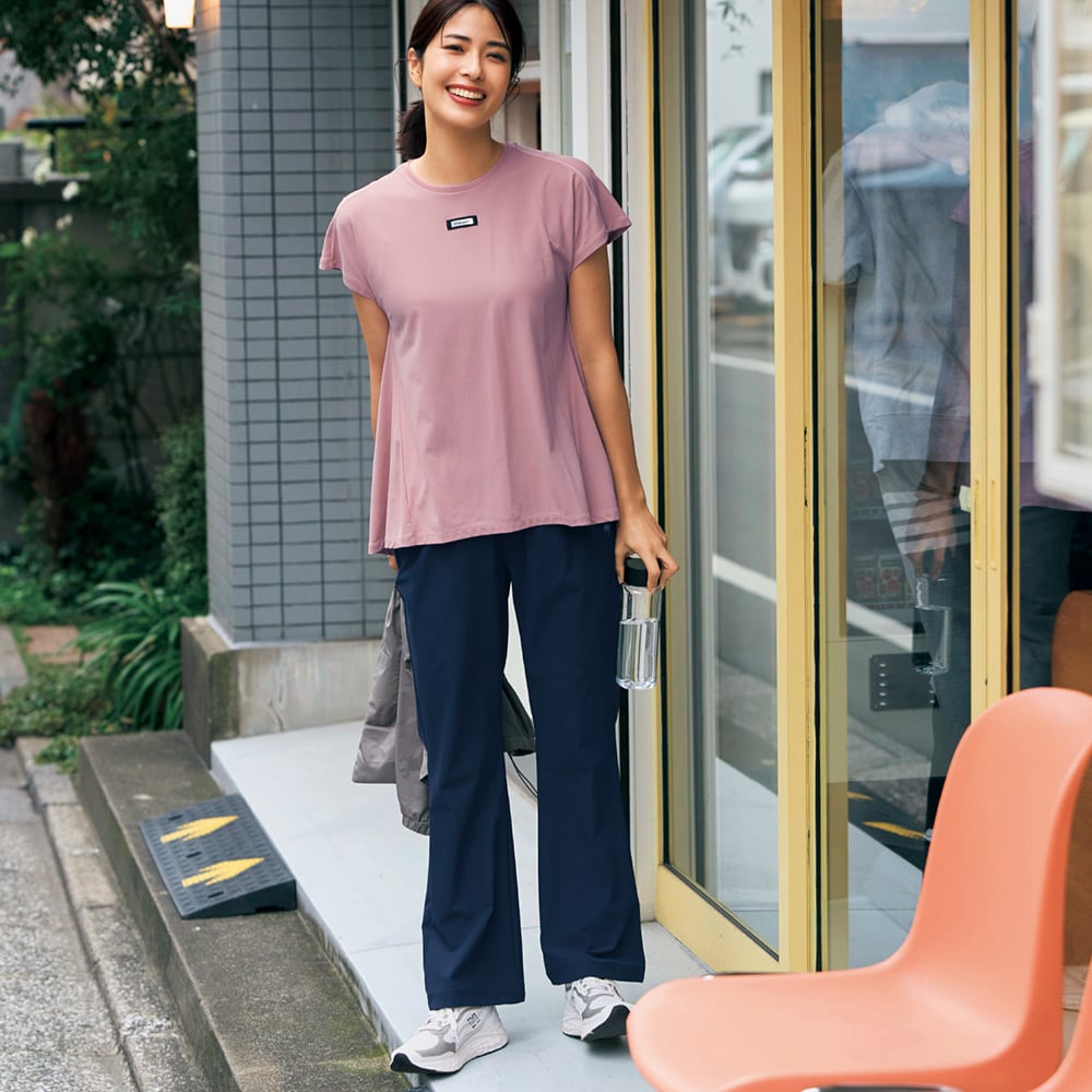 運動時に着用するアパレルがなかなか自分に合ったものがなくて探していたところデザインが気に入って購入しました。思ったとうりの体型を拾わないデザインで気に入りました。