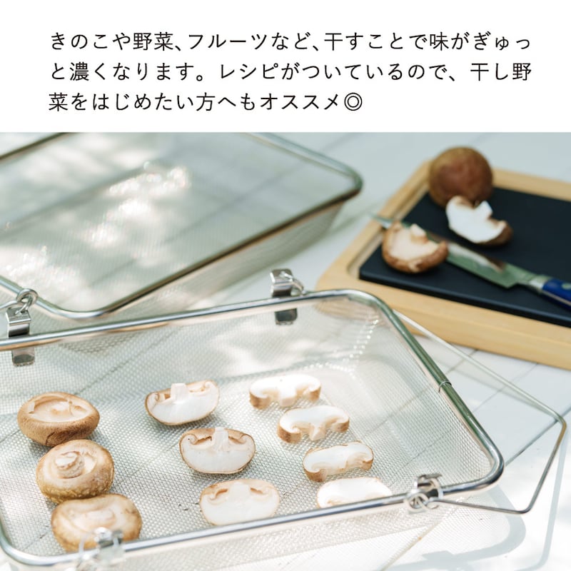 まだ使用していませんが、きのこを干したり、梅干し作りの時の干し作業にしたり、これからの時期は大根を干して切り干し大根を作ってみたいと思います。