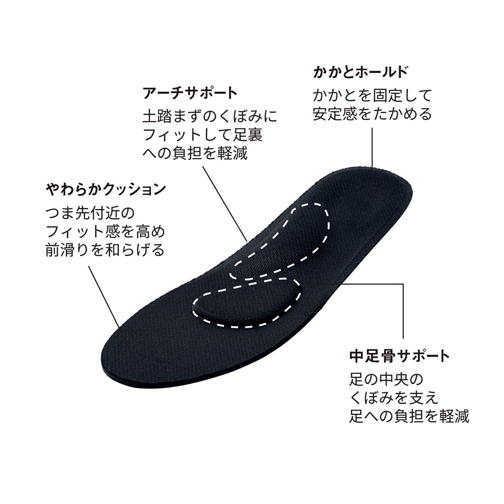 履き心地はふんわり。土踏まずアーチを底上げする感は無いです、ふんわり。