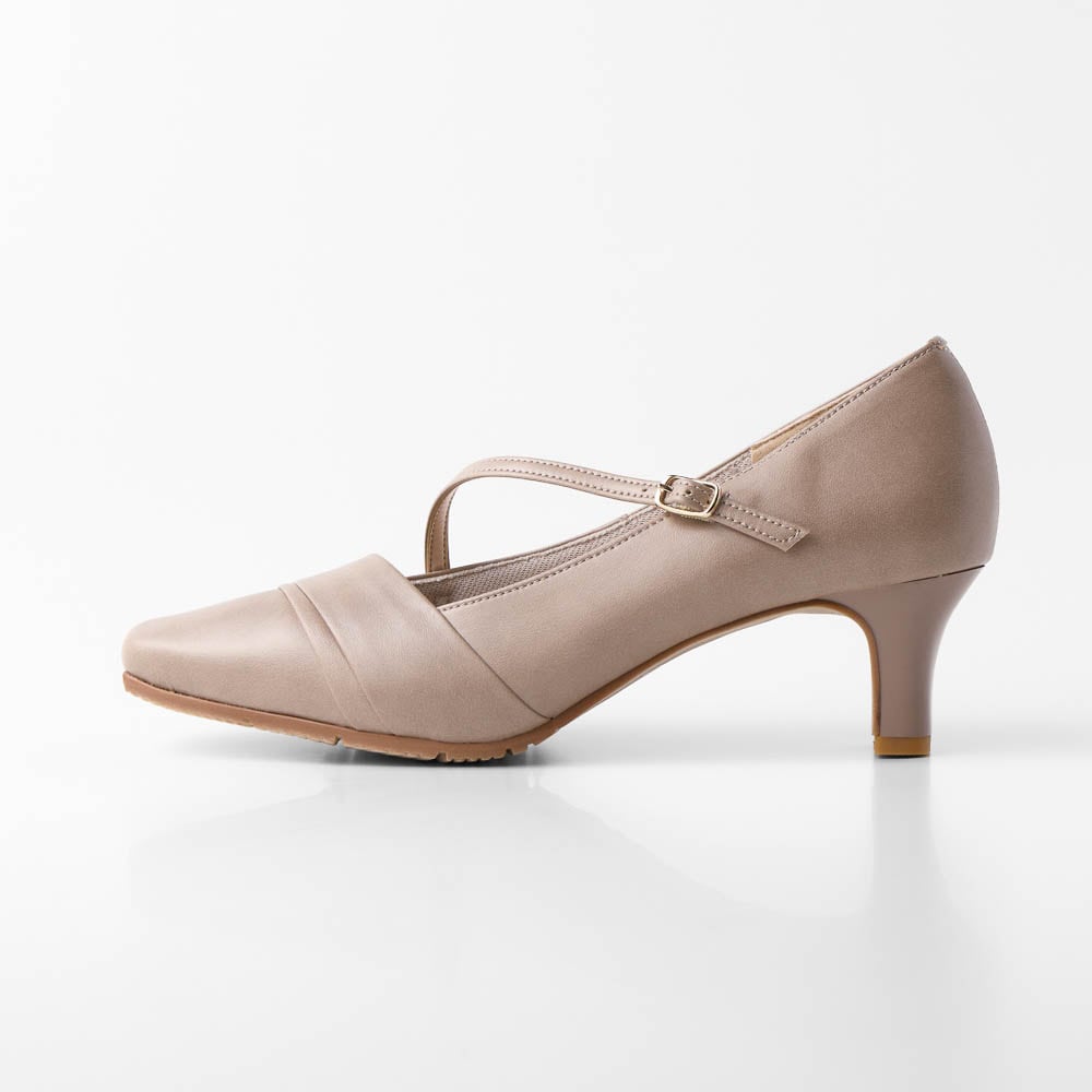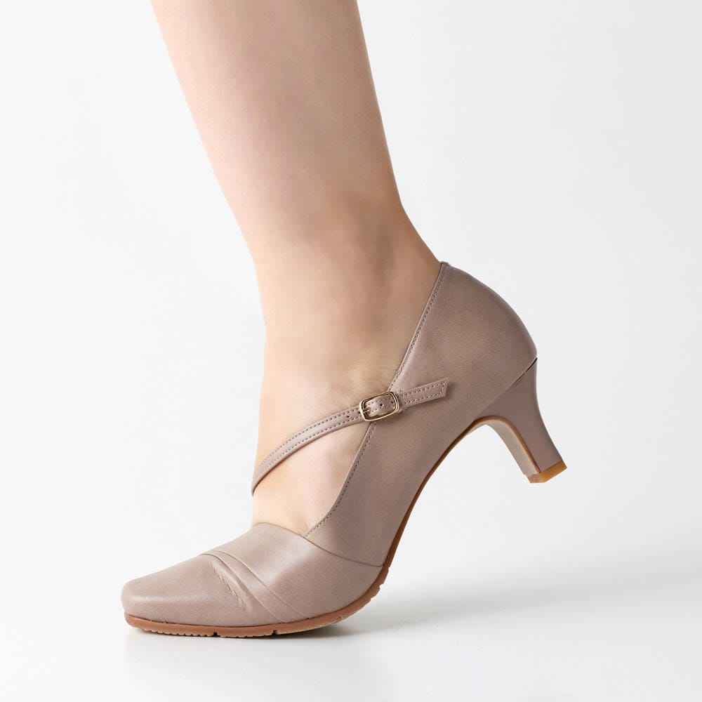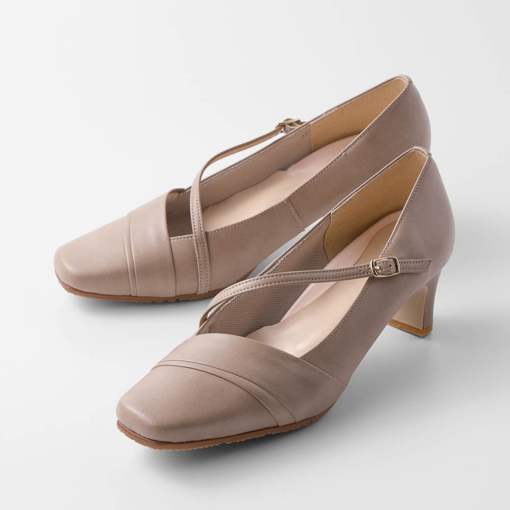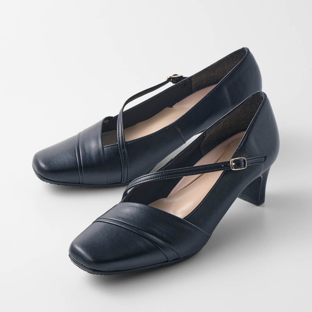 流れるような斜めストラップと履き口のカッティングで脚をきれいに演出