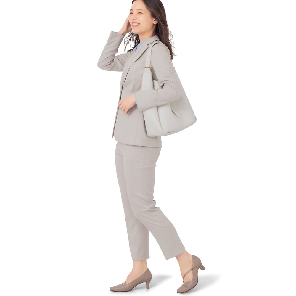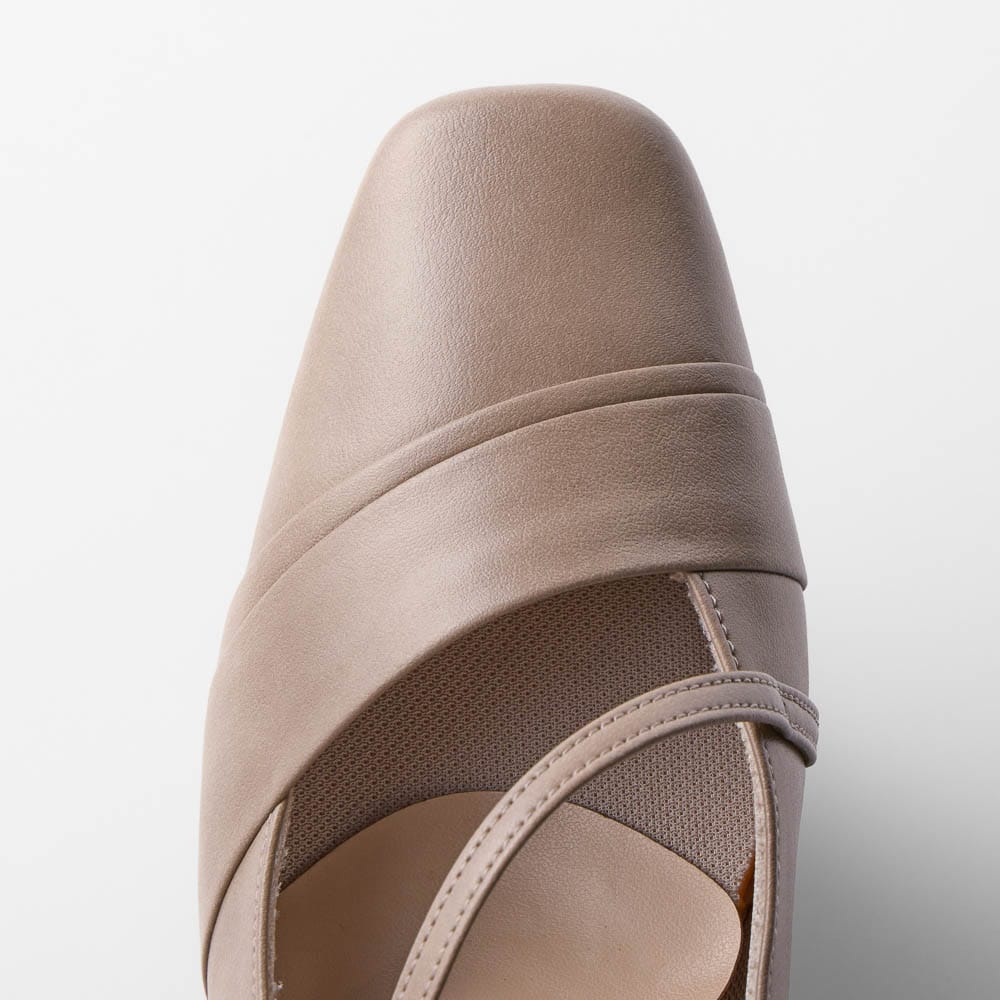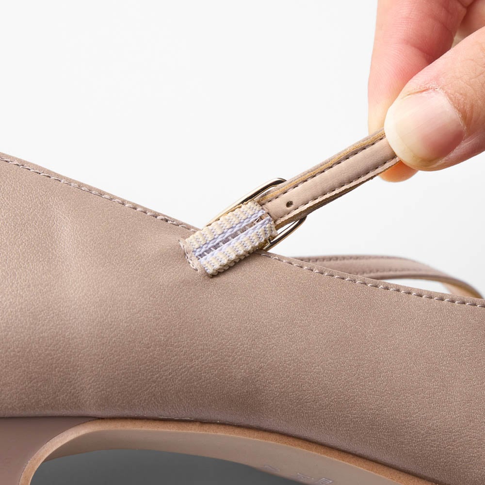 • 流れるような斜めストラップと履き口のカッティングで脚をきれいに演出