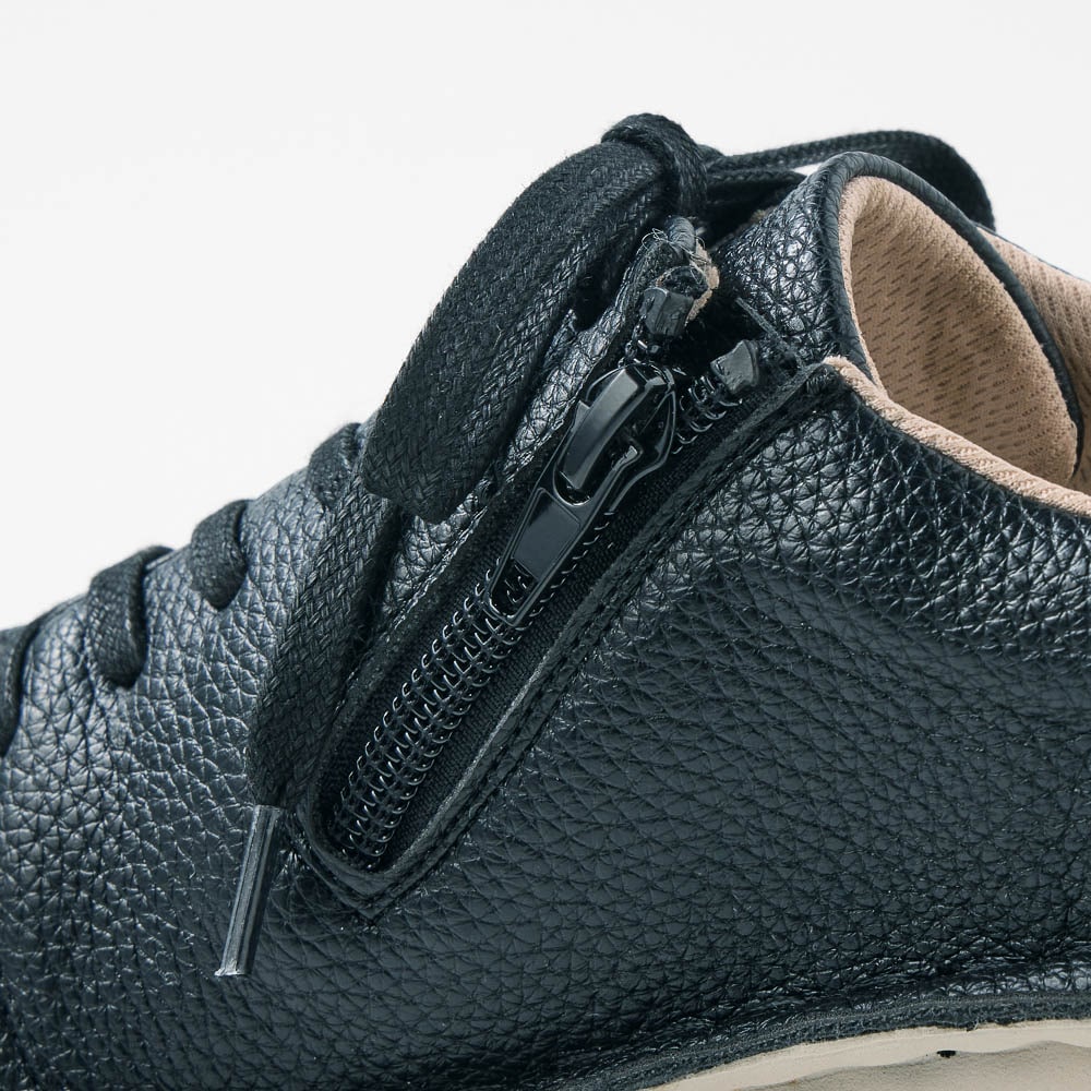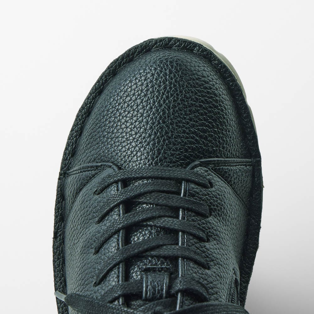 サイズはちょうどいいのですが、足をいれると「甲のベロがたぐまった?」という感触。実は甲のベロではなく、サイドパーツを甲パーツと縫い合わせている前端部分の鋭角三角形な縫い方が原因でした。厚みのあるパーツを縫い合わせるし、力もかかるところでしっかり縫いたいのはわかるけれど、そこを三角にしっかり縫った結果内側寄りに硬いんです。丁度小指のある所がものすごい違和感圧迫感です。