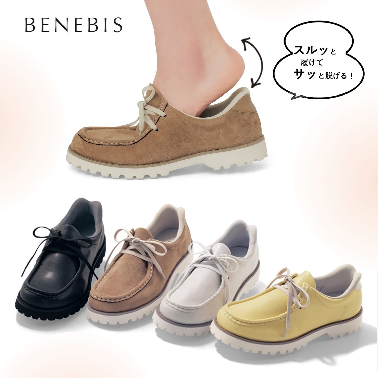ハンズフリーはスニーカーデザインばかりで、これは良いなと購入しました。表面はツルッとした感じで正直高級感はありません。でも作りがしっかりしている所がカバーしてくれます。ハンズフリーだからなのか中はとても滑りが良くワンサイズ下げないと踵が抜けそうになります。サイズ選び失敗です。ワイズが普段Dなのにこれは4E。ソールが足の反りに付いて来ないので、試し履きの時にしっかり大股で歩いてみるべきです。インソールはとても柔らかで甲をしっかり押さえてくれます。問題はこのふわふわが潰れてしまった時どうなるのかです。ハンズフリーであることが目立たないデザイン性の高さが良いです。