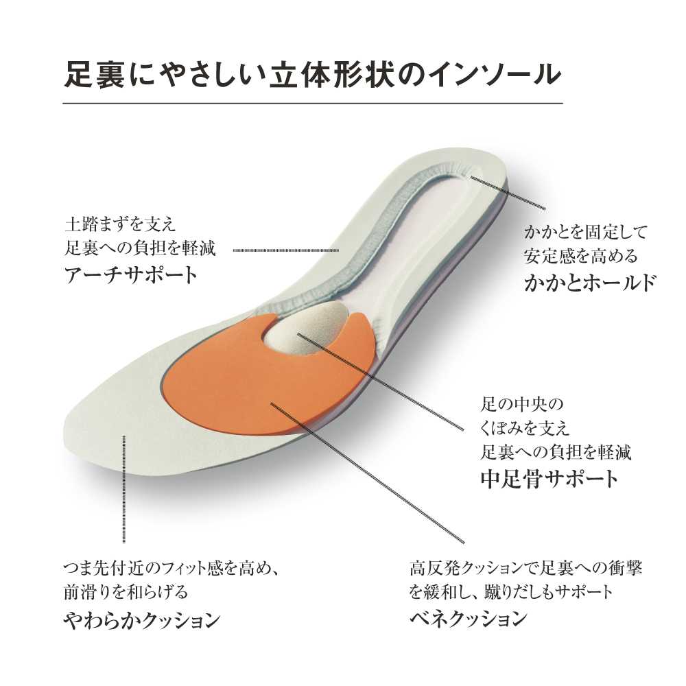 履きやすく、デザインも可愛いです。もともとのインソールが柔らかすぎるのか、足裏に靴底の凸凹が感じられたのが若干気になりましたが、インソール追加して履こうと思います。