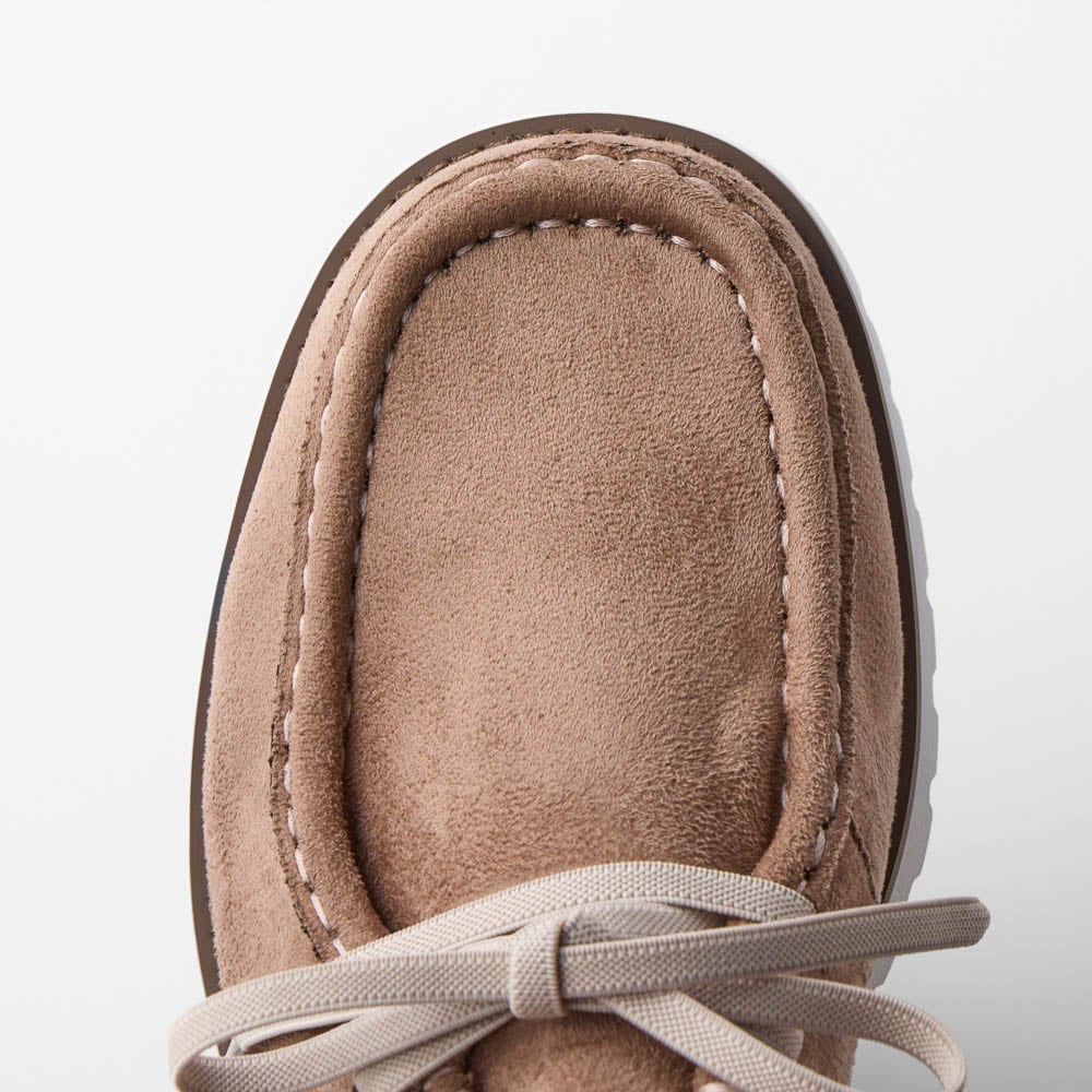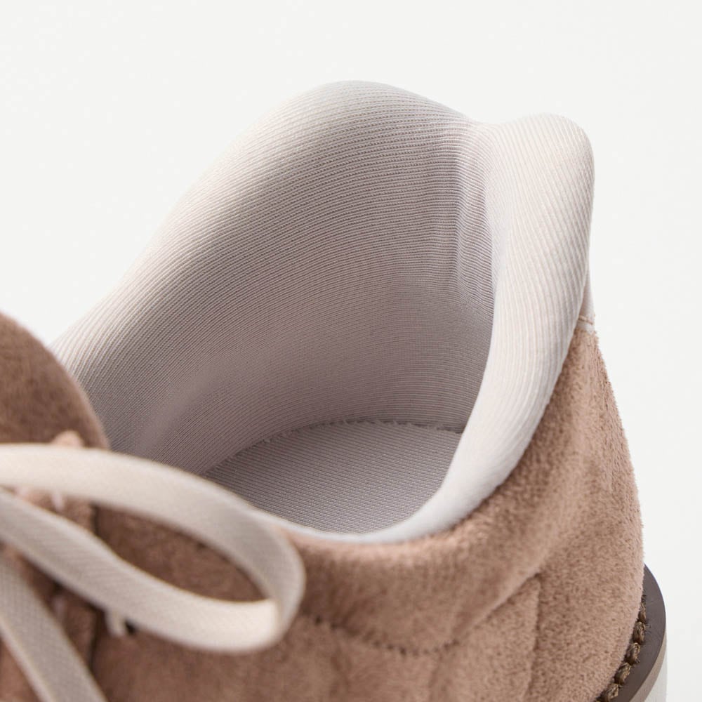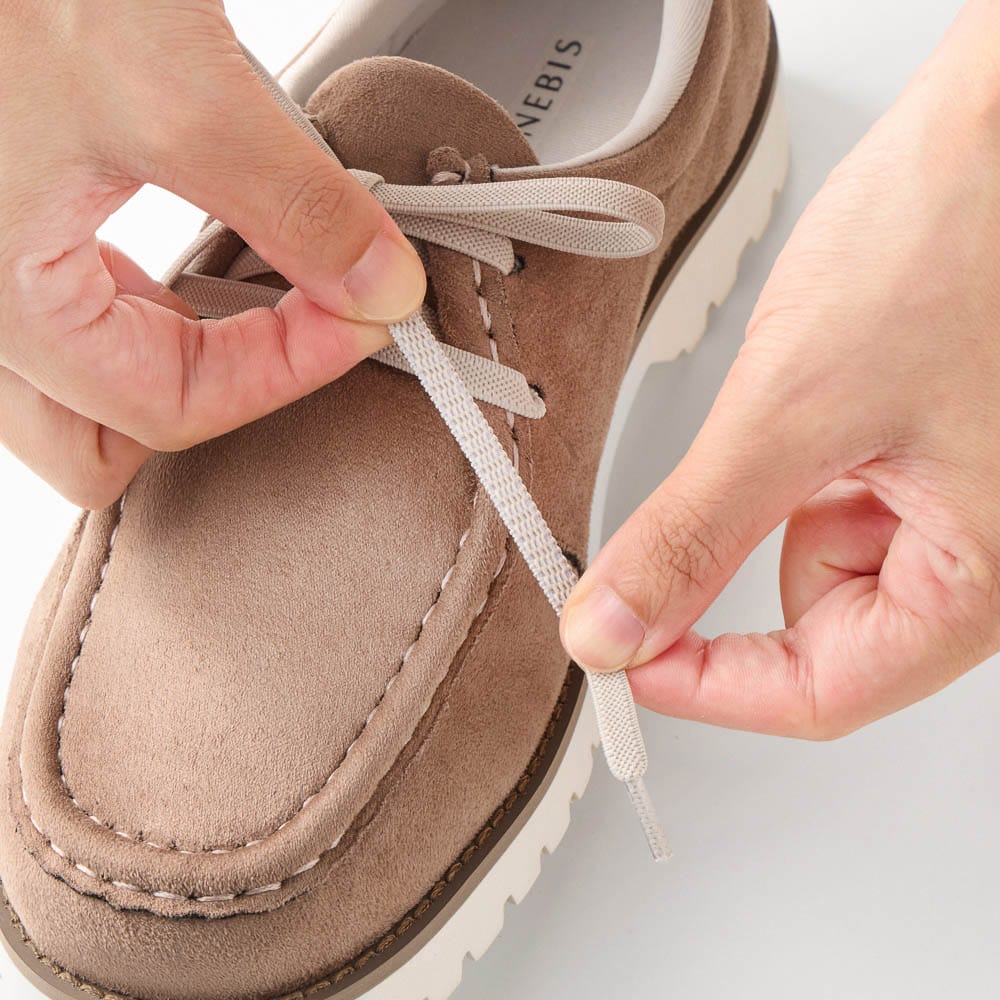 安っぽいです。特に白いゴム紐。足入れしやすいように採用されたのかな?全体的にもとてもこの値段には見えないです。そして歩くとゴム紐が伸びてパカパカします。商品説明にも書いてはありましたが、かなりぎゅっと締めないといけないようです。私は白でない伸びない紐を買ってきて取り替えました。ブーツのハンズフリーは良かったのにな。伸びる紐じゃなかったし。4Eは種類が少ないので見つけると飛びついてしまいます。今回は4Eという機能を購入したということで我慢します。
