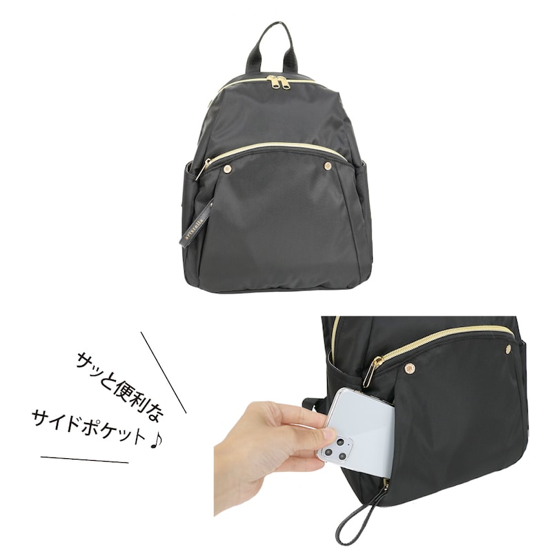 ・カード入れや携帯をさっと取り出しやすい便利なサイドポケット
