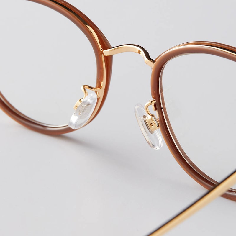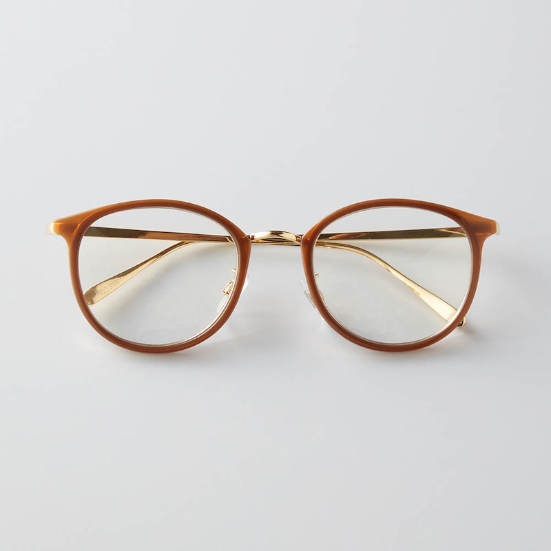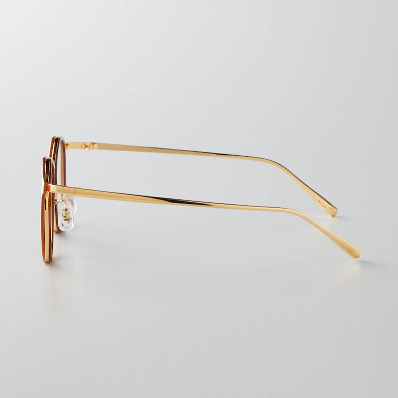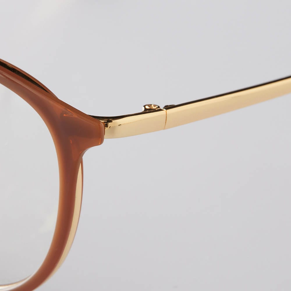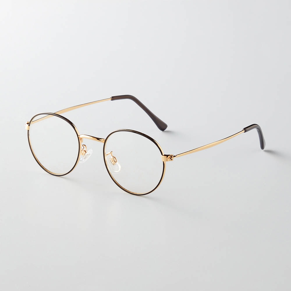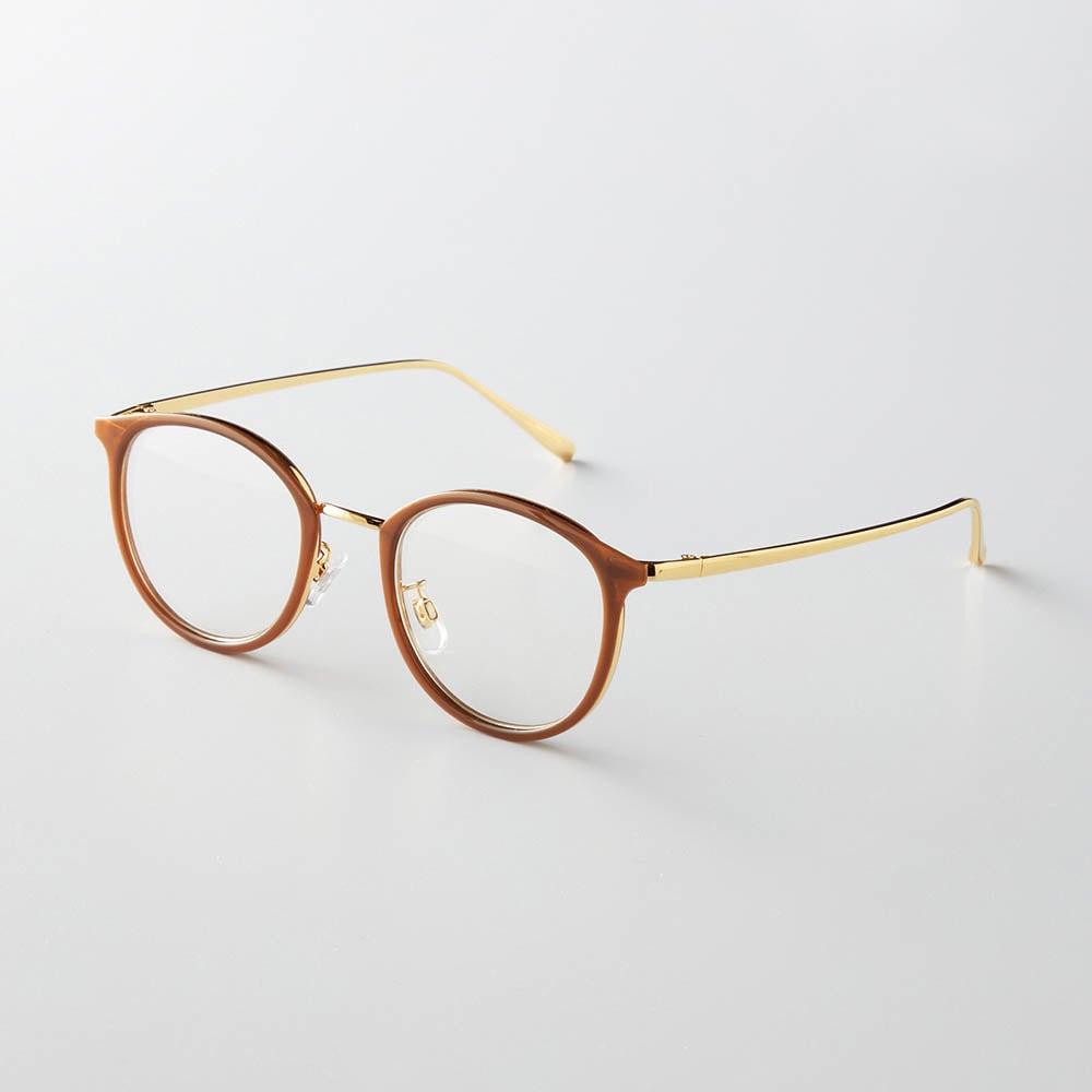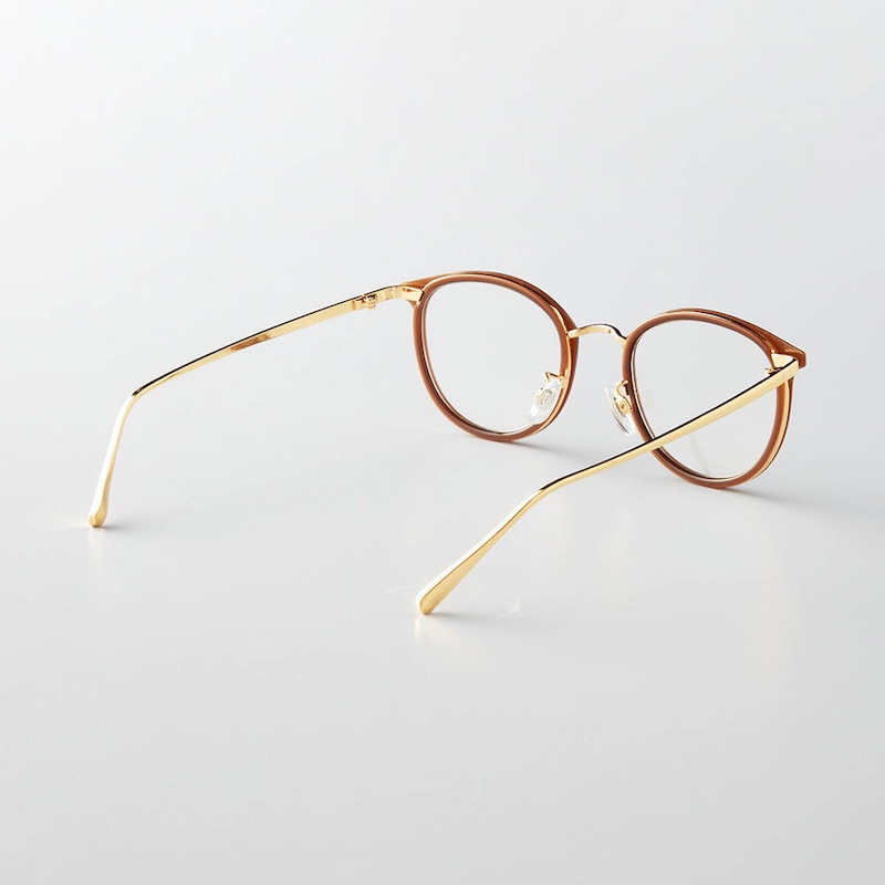 ・ブラウンフレーム×メタル製のつるがコンビになった洒落感デザインと