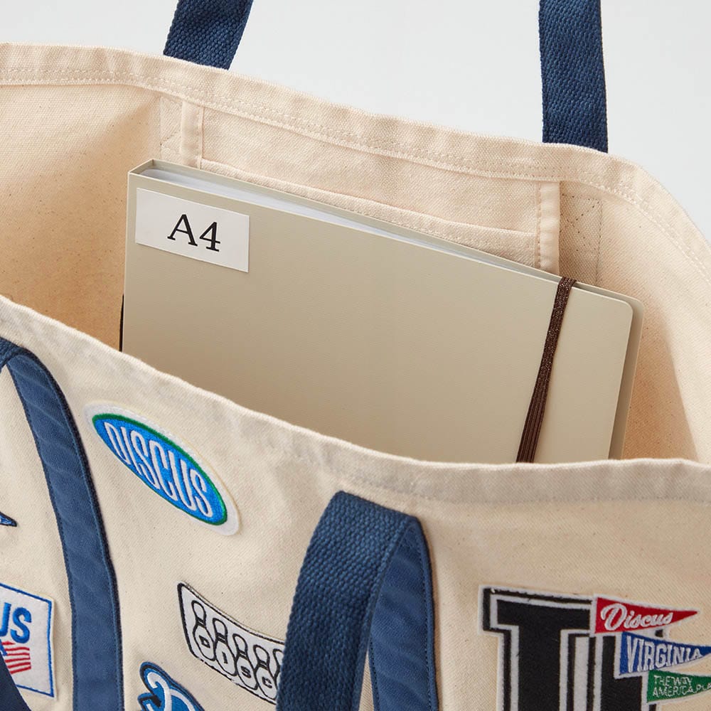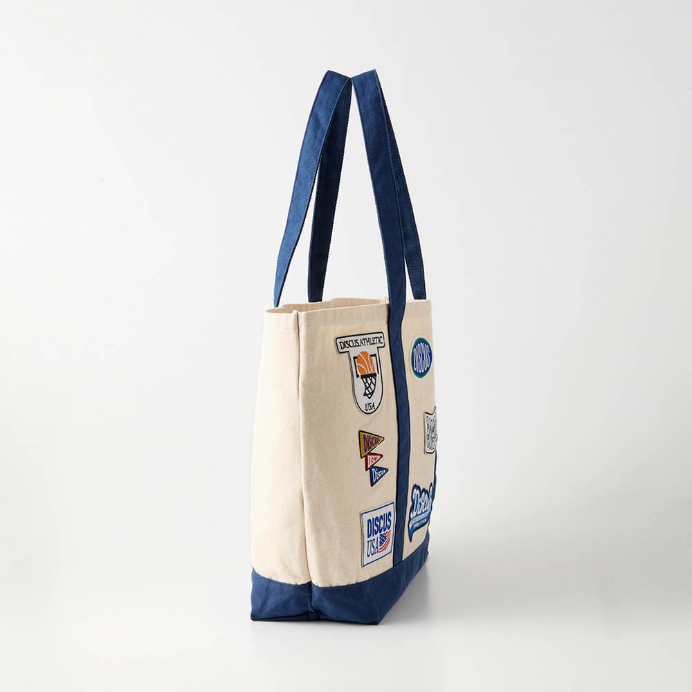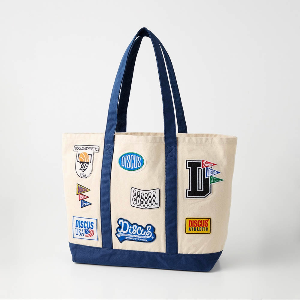・刺繍ワッペンをランダムに縫い付けたインパクト大のビッグトート