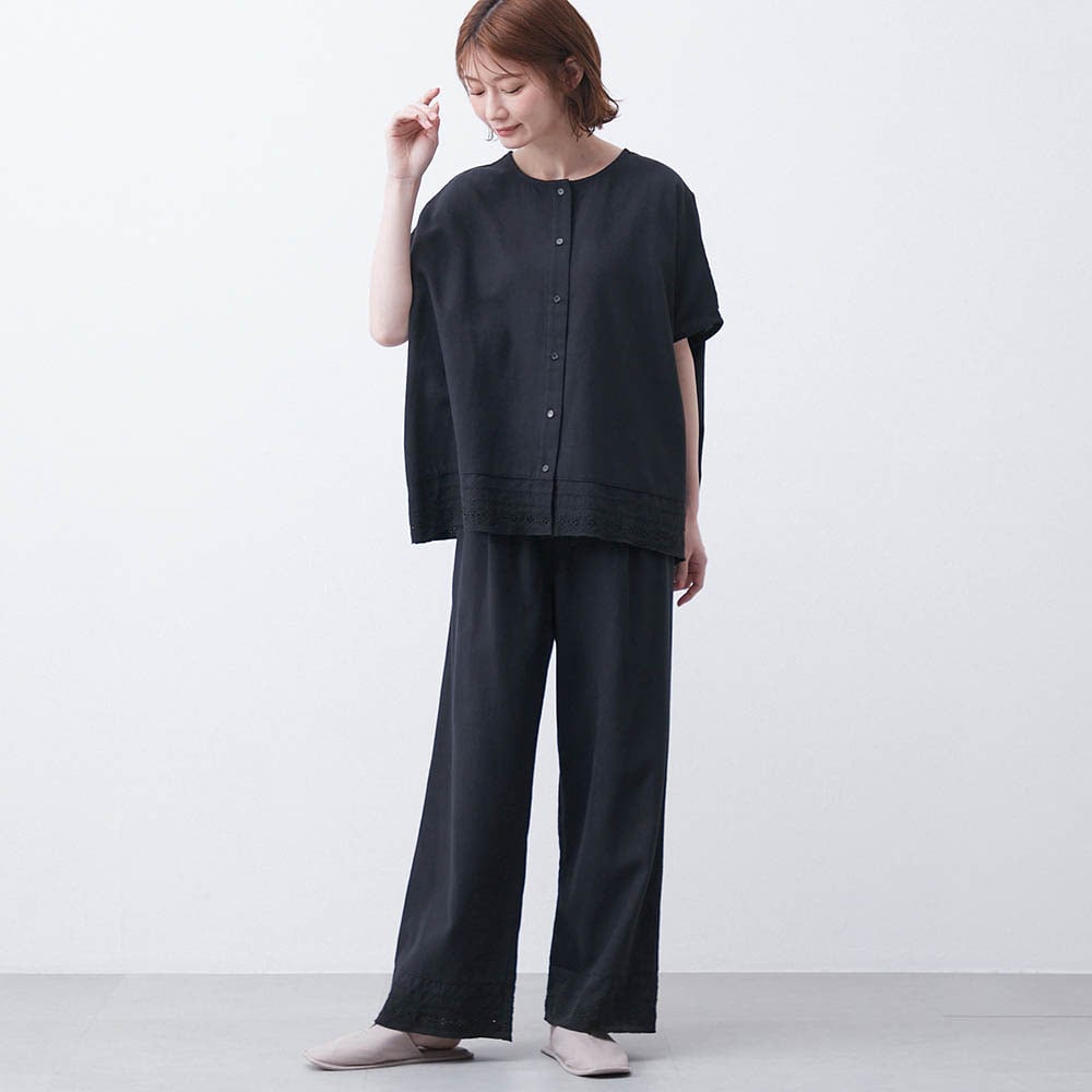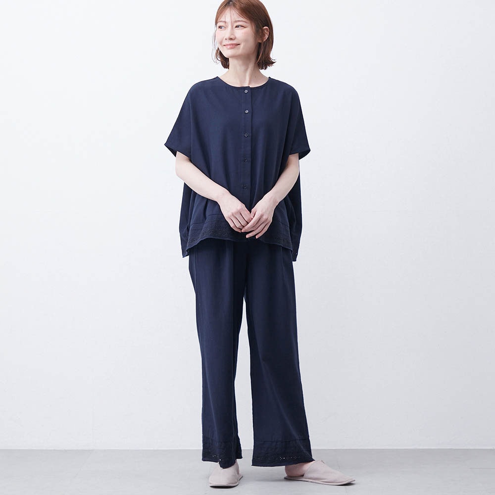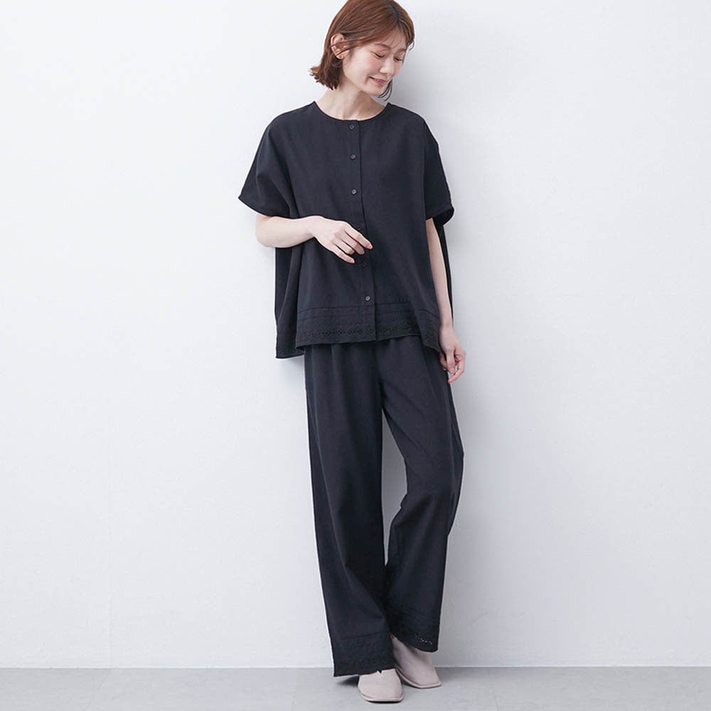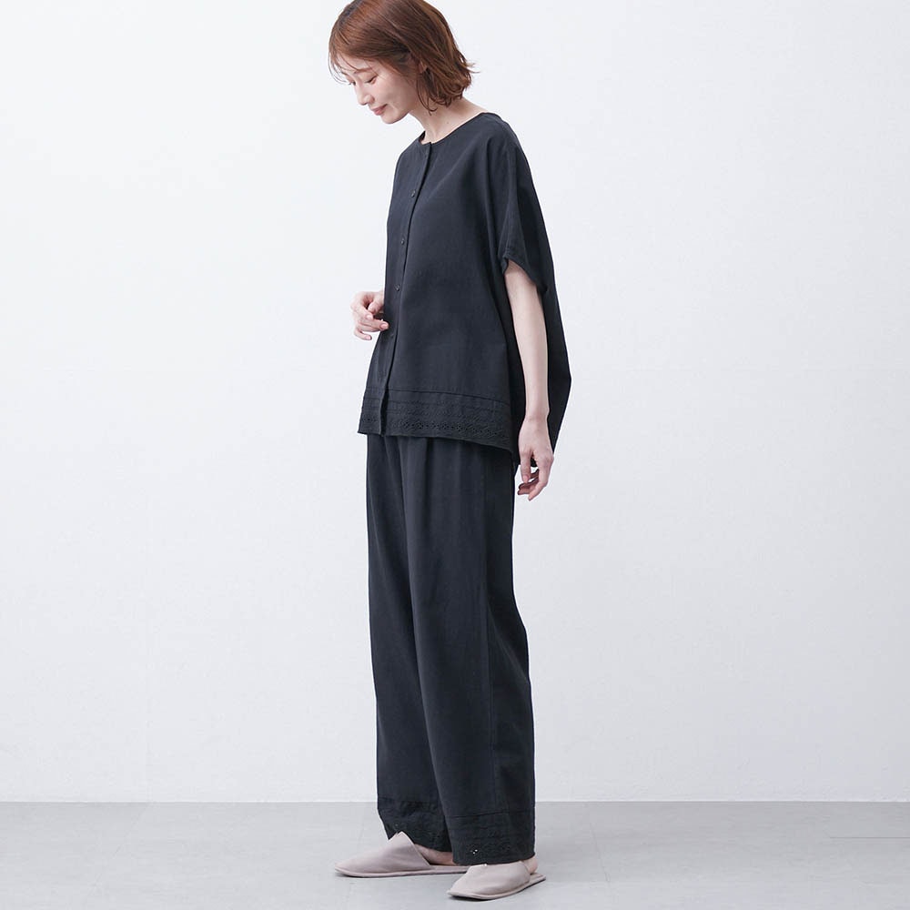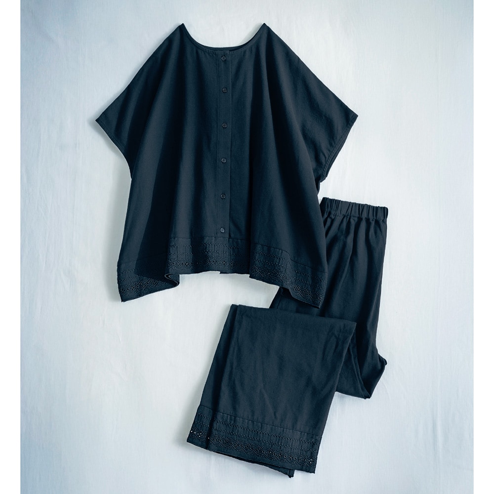 刺繍レースをあしらった大人のコットンセットアップ