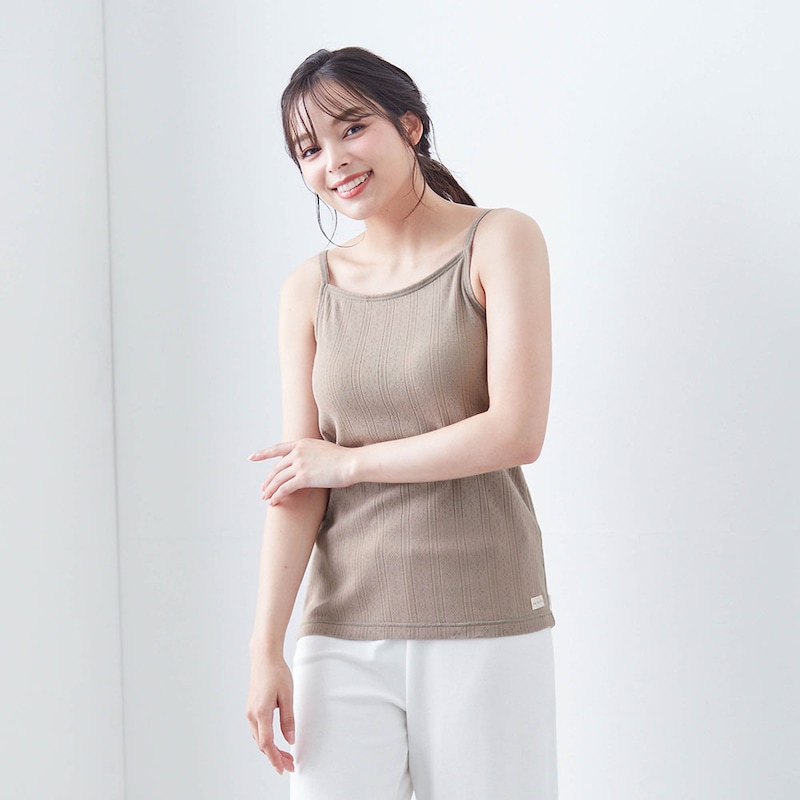 ・表情のあるパターンメッシュ素材で仕立てたブラキャミソール