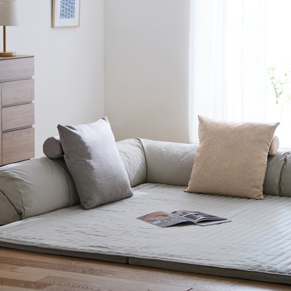 ●大きなクッションと、取り外し可能な円筒形のボルスタークッションの2層構造です。