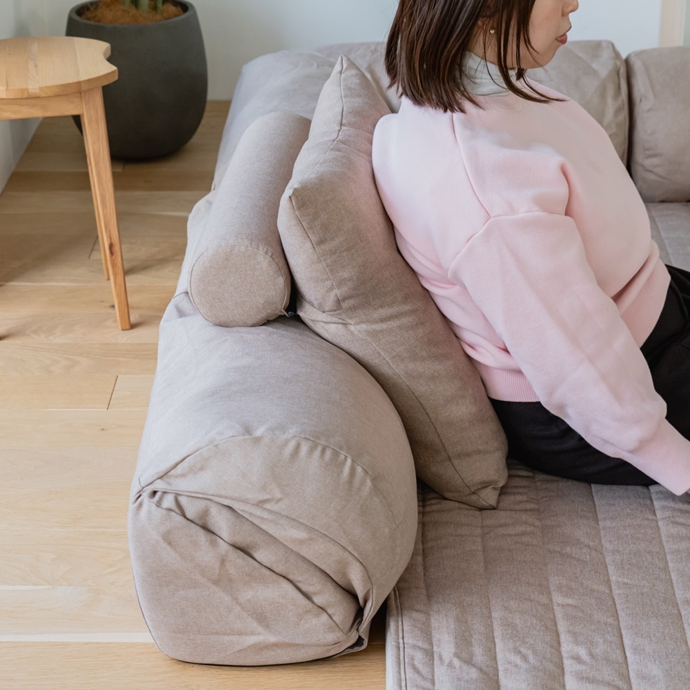 ●大きめのクッションとボルスタークッションを組み合わせたアイテムで、背中をしっかり支えラクに座れます。
