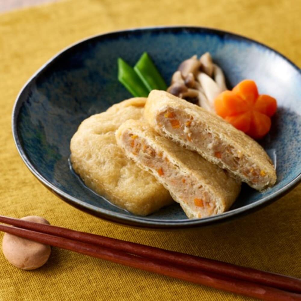 お揚げの中に国産の鶏肉や豚肉等を練った具材をぎっしり詰めました。