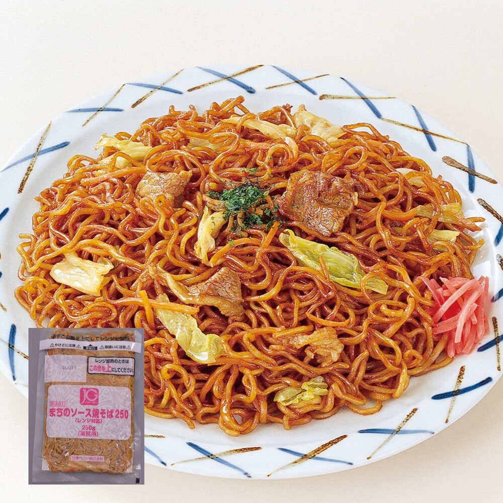 ・まちのソース焼そば:電子レンジで短時間調理することで、麺のもちもち食感、シャキシャキした野菜の食感、ソースの香りも良く、より美味しく提供できます。