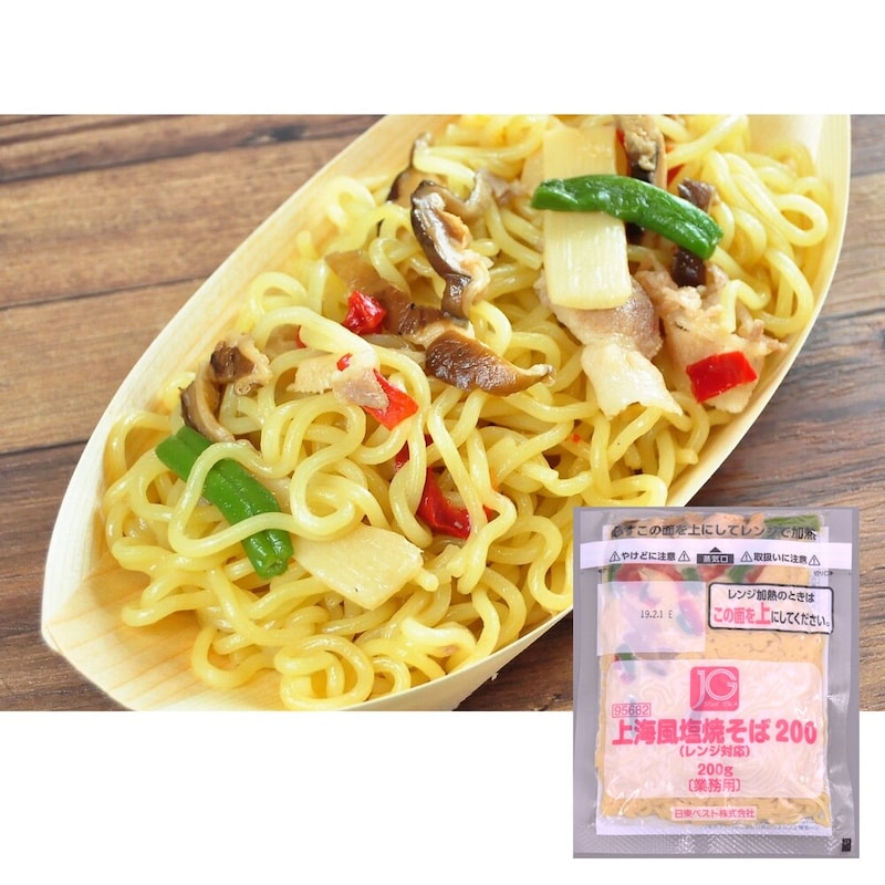 ・上海風塩焼そば:紹興酒を隠し味に彩り豊かな野菜を使用しました。あっさりとした塩味が特徴の焼そばです。