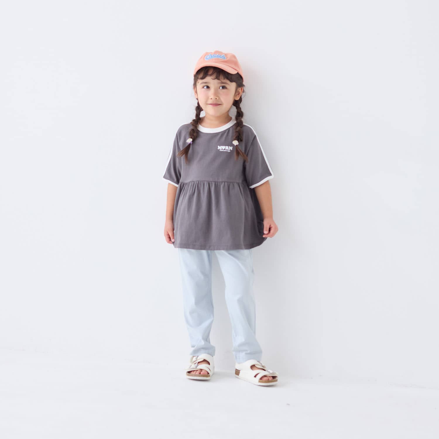 薄くて涼しい袖ラインゆるシルエットチュニック 【子供服 半袖】
