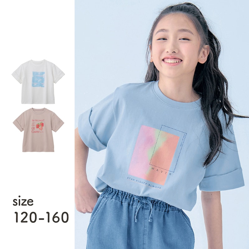 選べるプリント袖ロールアップデザインTシャツ 【子供服 半袖】