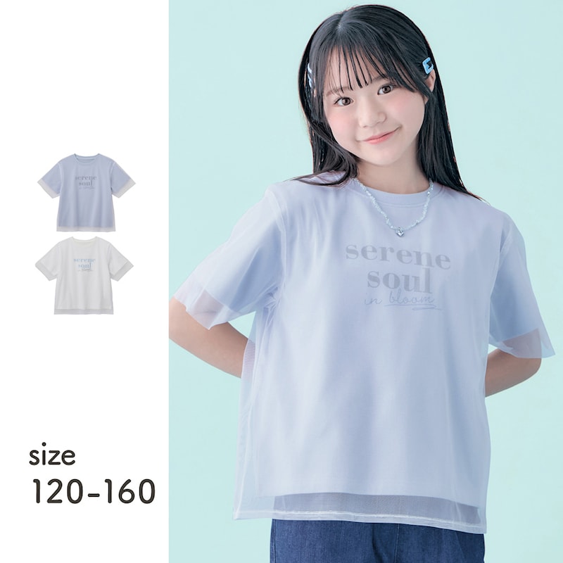 チュールレイヤード風ロゴ半袖Tシャツ 【子供服】