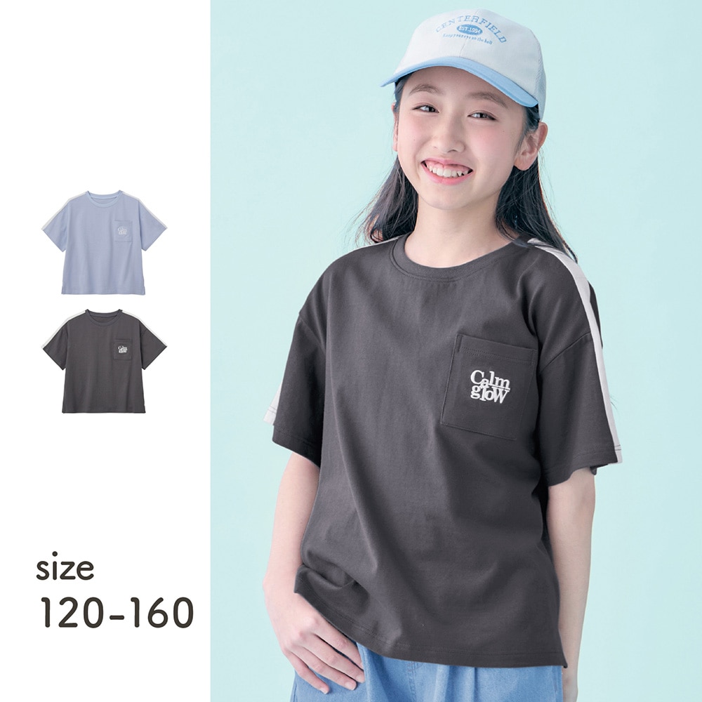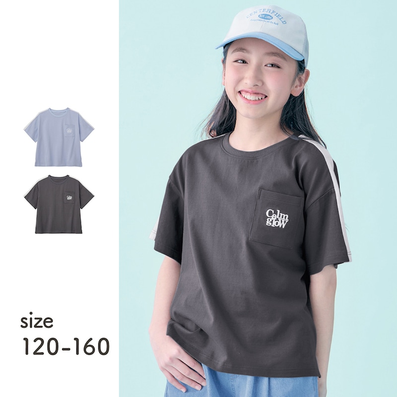 袖配色切替えポケット刺繍Tシャツ 【子供服】