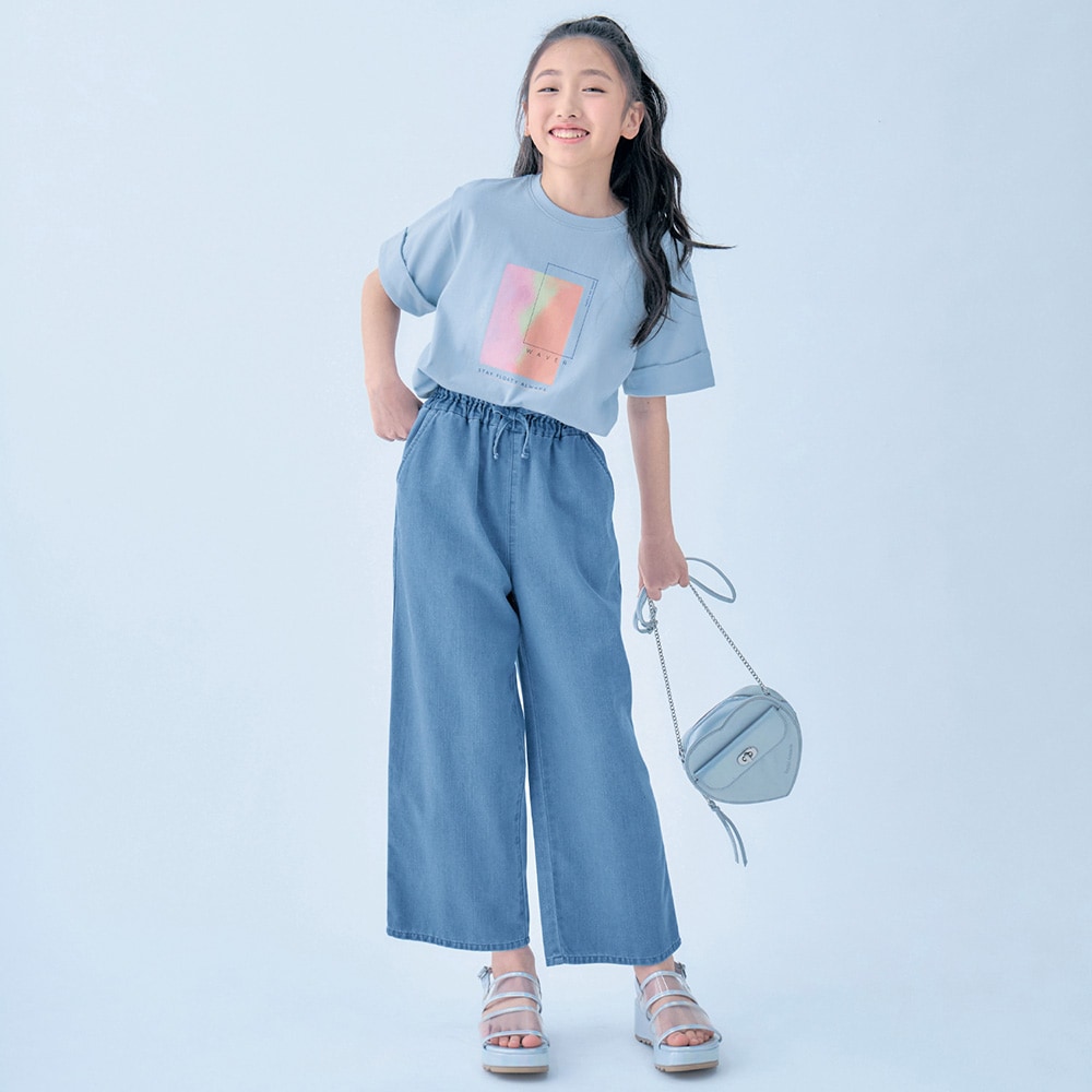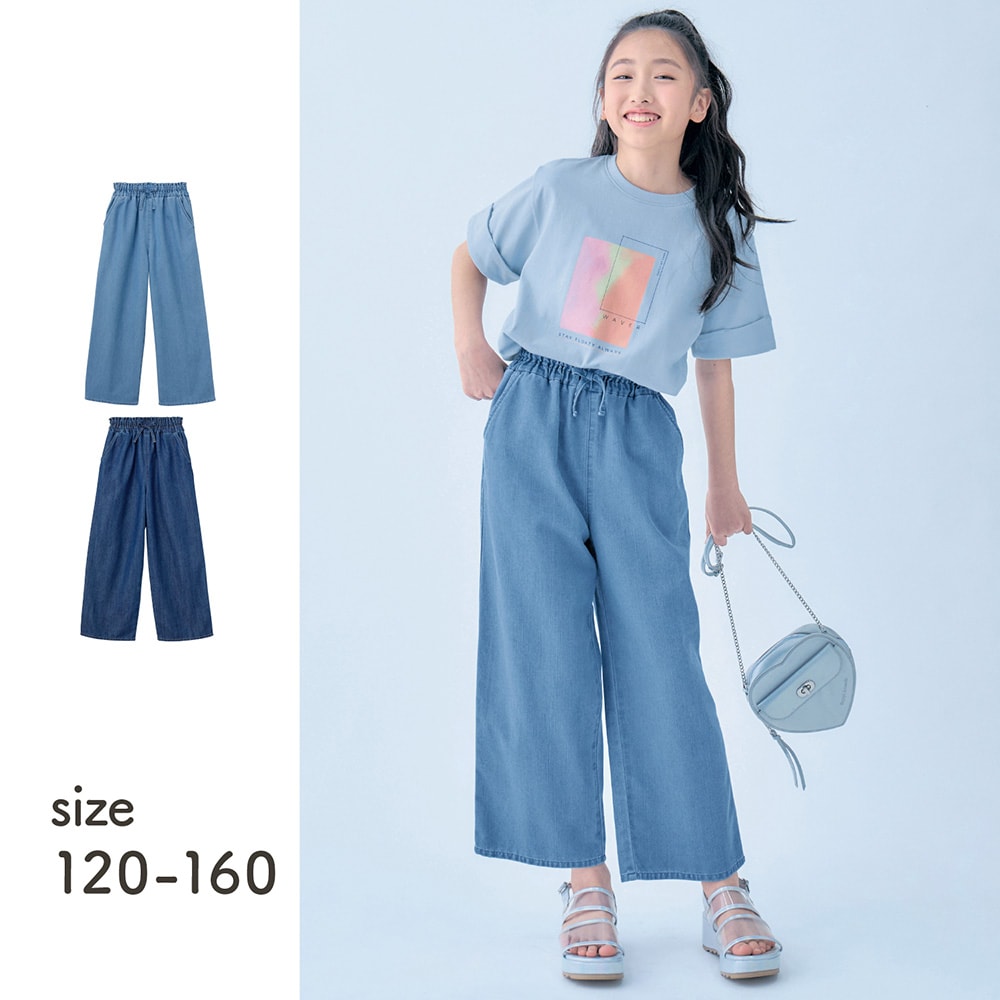 ウエストリボンライトオンスデニムイージーパンツ 【子供ズボン】