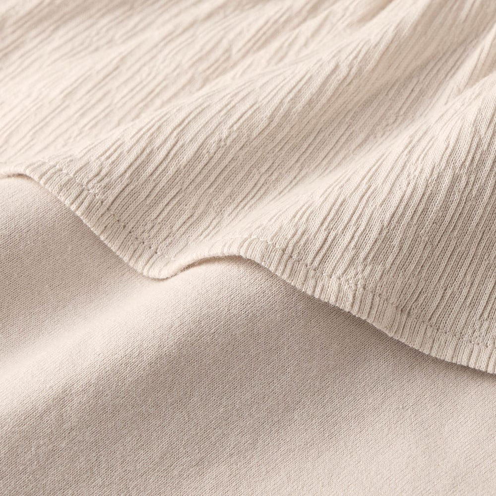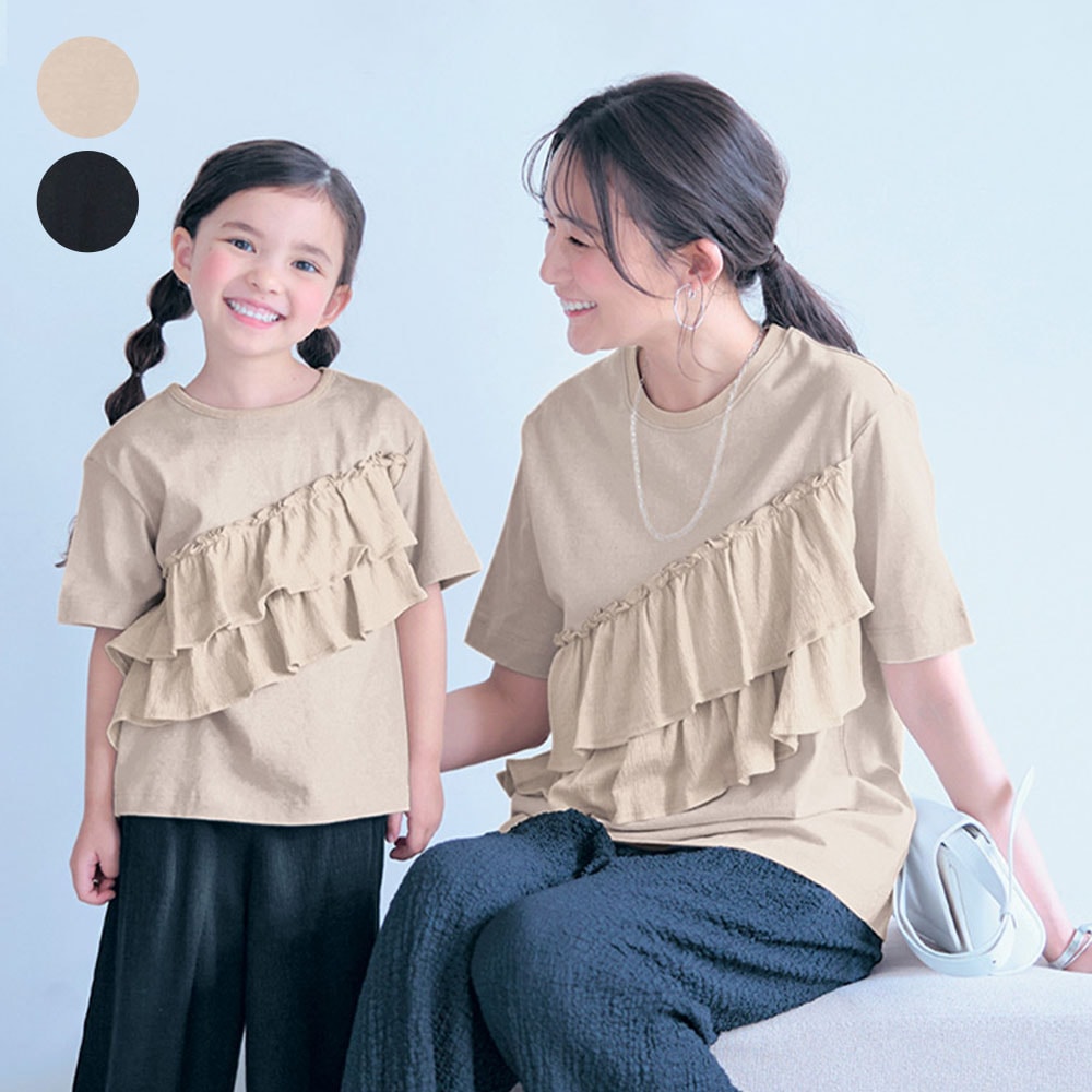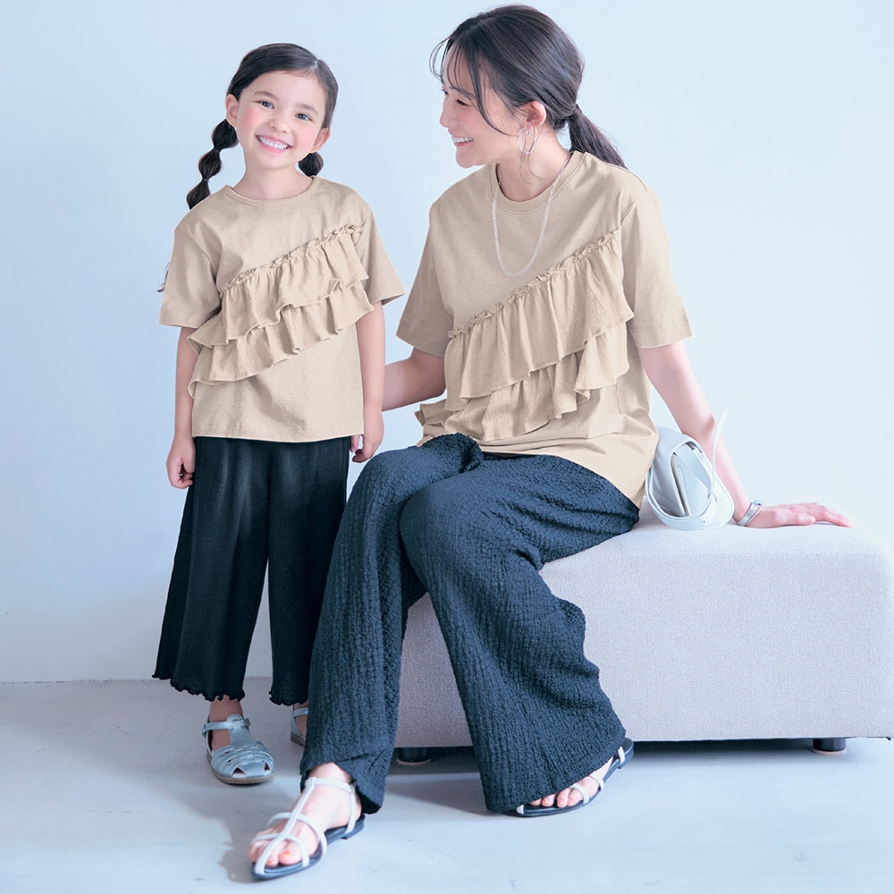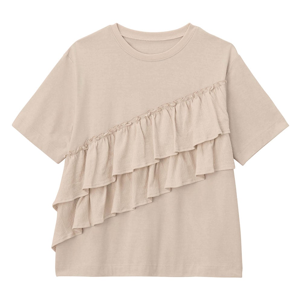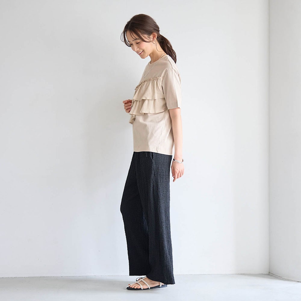 ●<カットソー>綿100%(天竺、フリル部分:楊柳天竺)、リブ部分:<カットソー>綿95%、ポリウレタン5%(リブ)●中国製