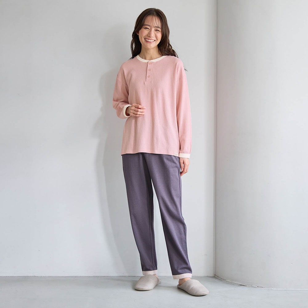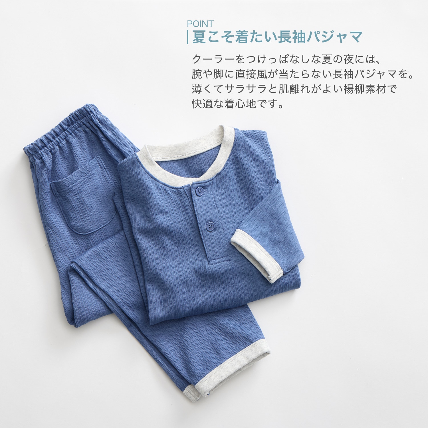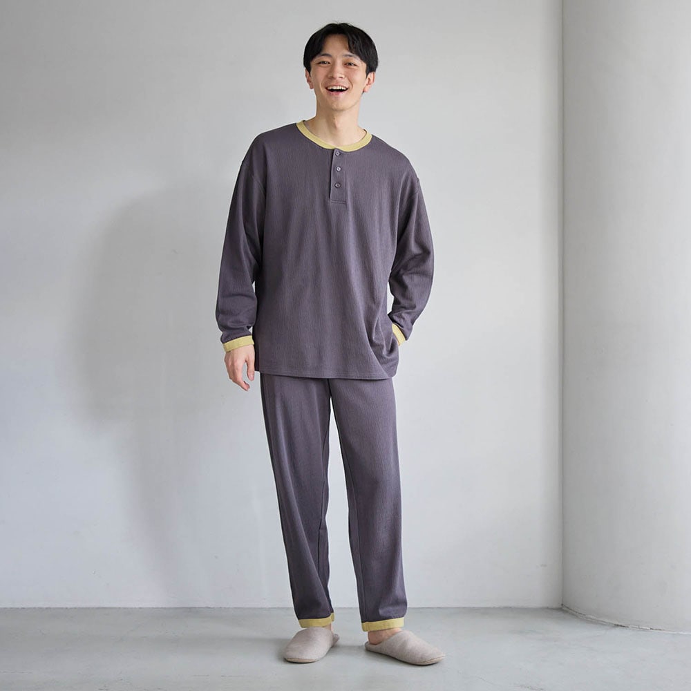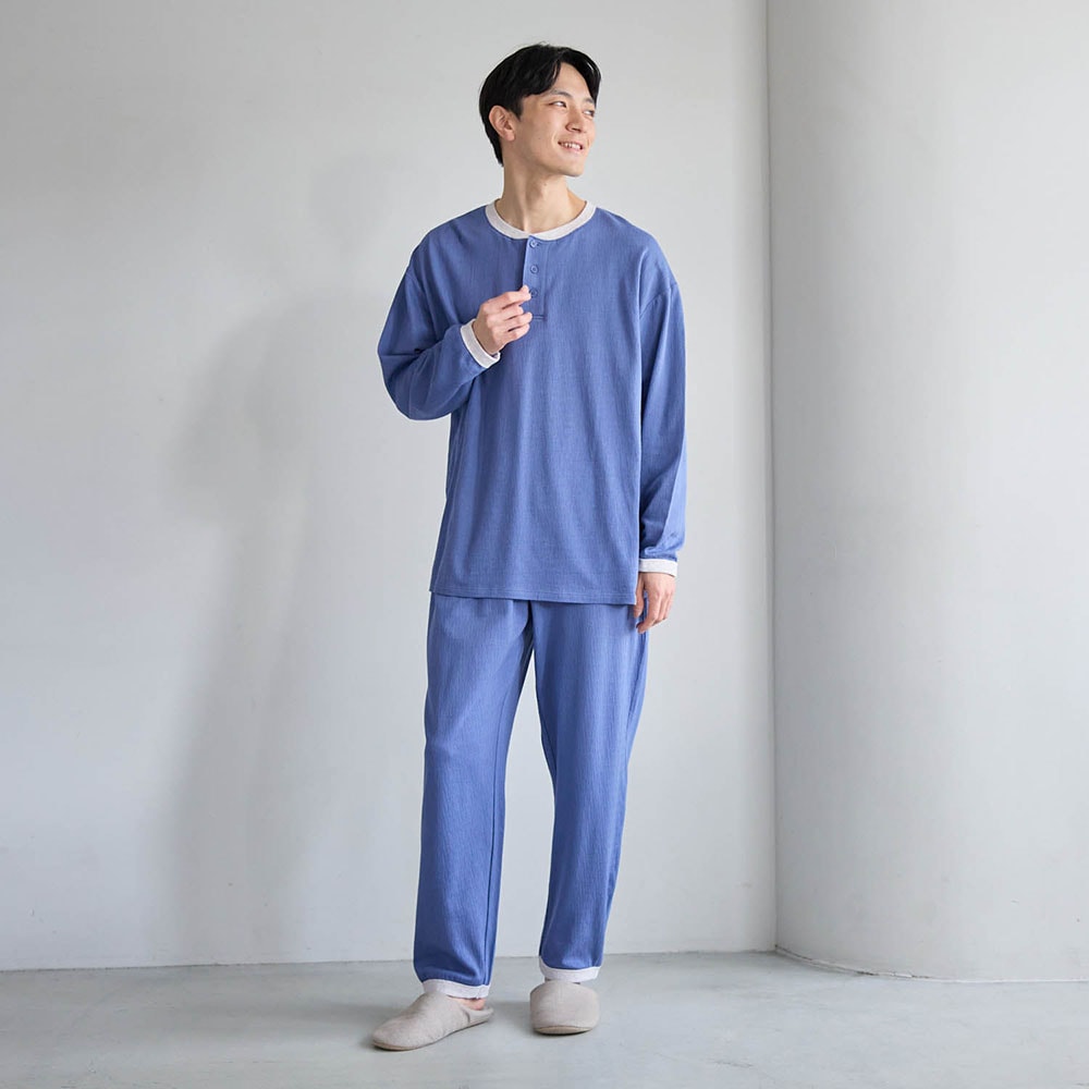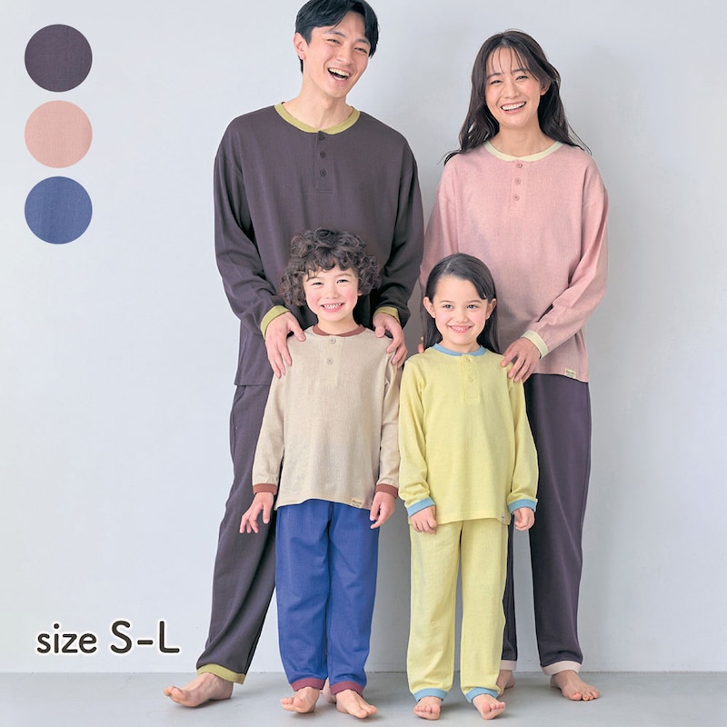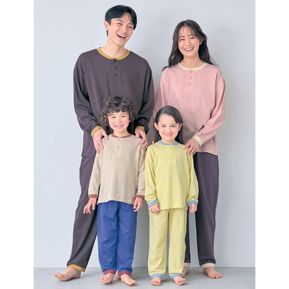 プチプラ!【家族でリンク】冷房対策におすすめのサラサラ快適な楊柳天竺長袖パジャマ(ユニセックス)