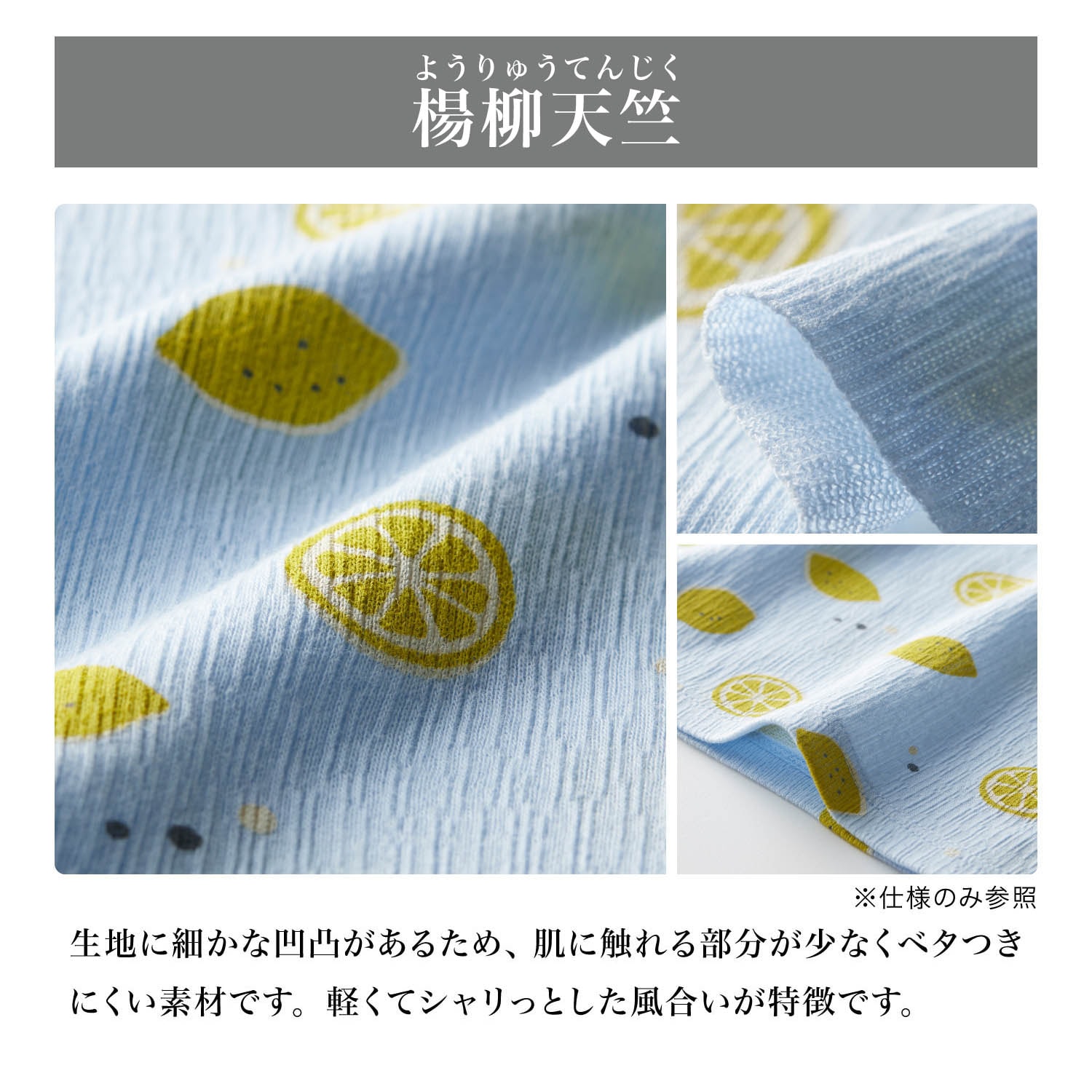・薄くてサラッと肌離れがよい楊柳素材
