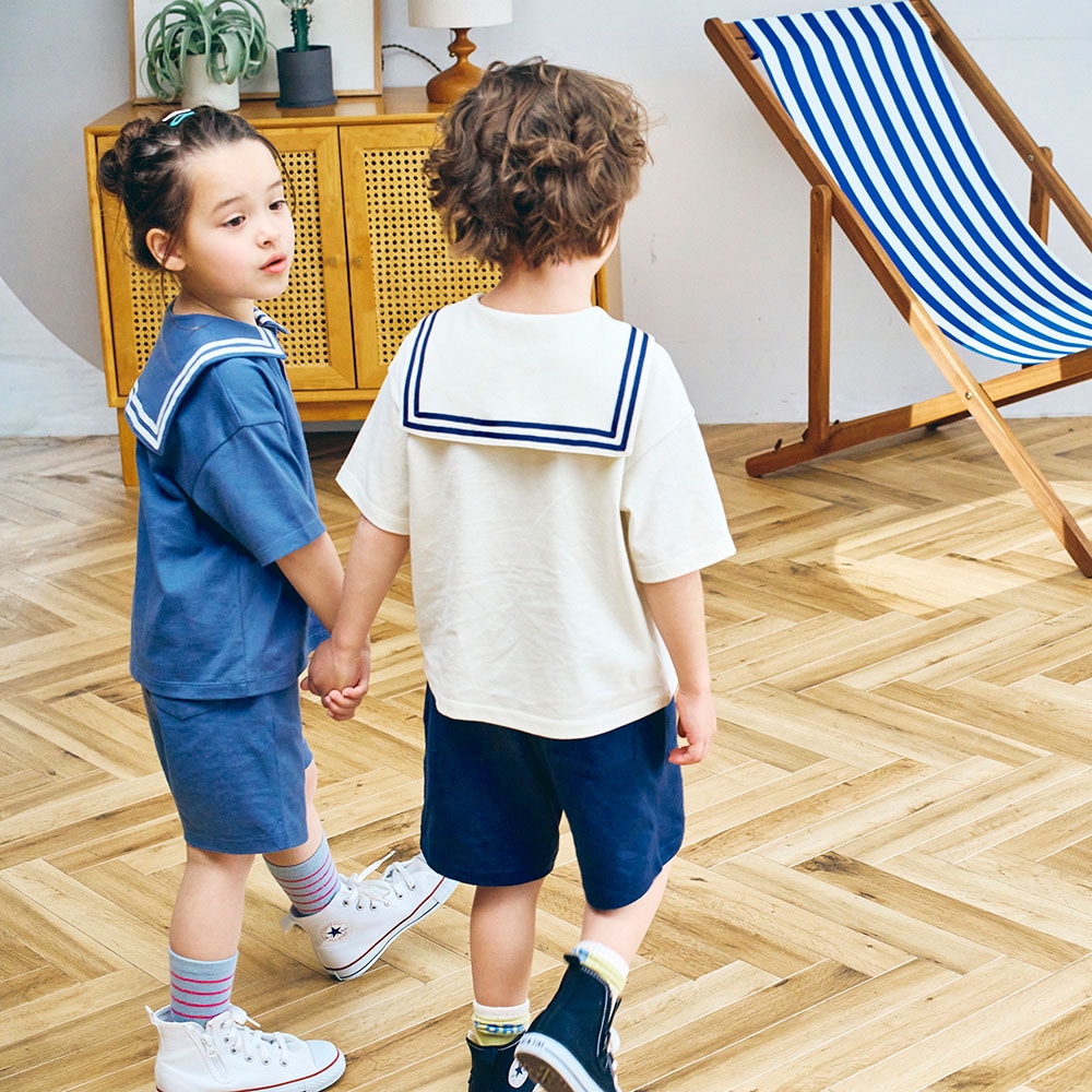 すぐおしゃれセーラーTシャツ&ショートパンツセット 【子供服 子供ズボン 半袖】