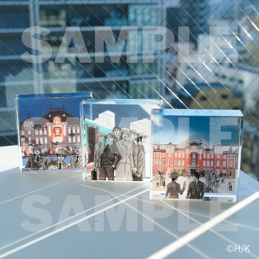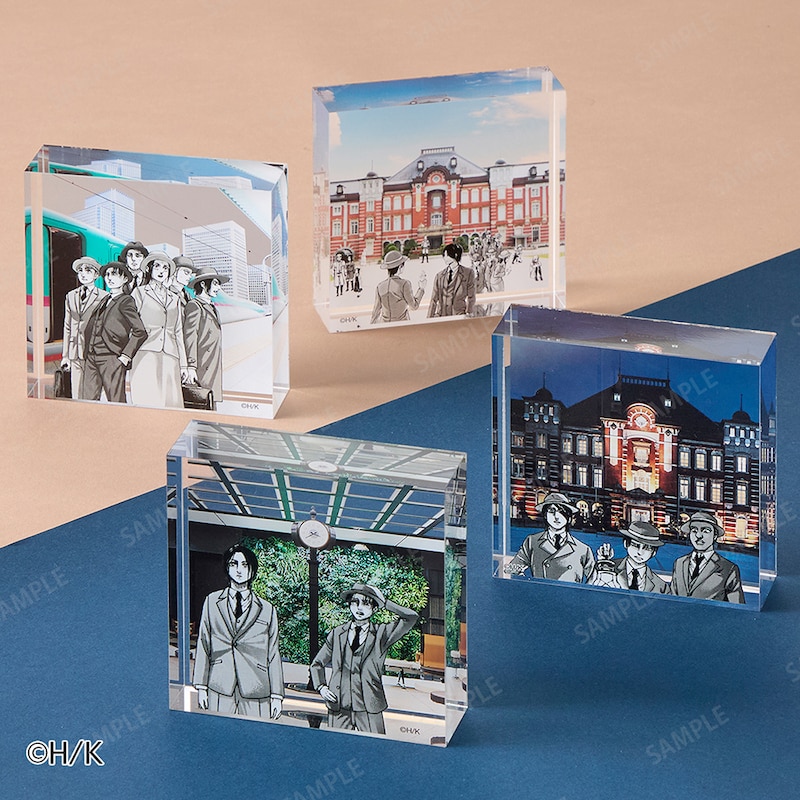 ●新幹線で東京駅に降り立ち、昼の東京駅丸の内駅舎、東京駅構内のスクエアゼロの時計前、夜の東京駅丸の内駅舎というシーンと時間の経過を描いたストーリー性のある絵柄を4種類ご用意