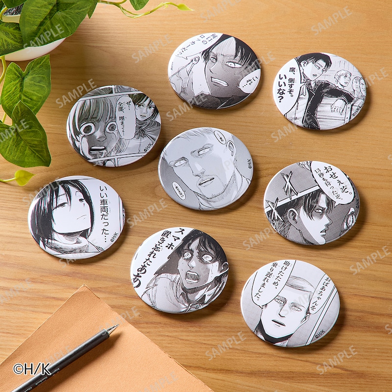 ●『進撃の巨人』の原画をプリントした缶バッジを全8種類セットに