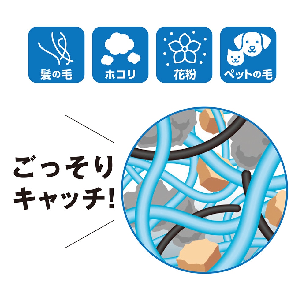 ふわふわ繊維で髪の毛やホコリをごっそり絡めとる!