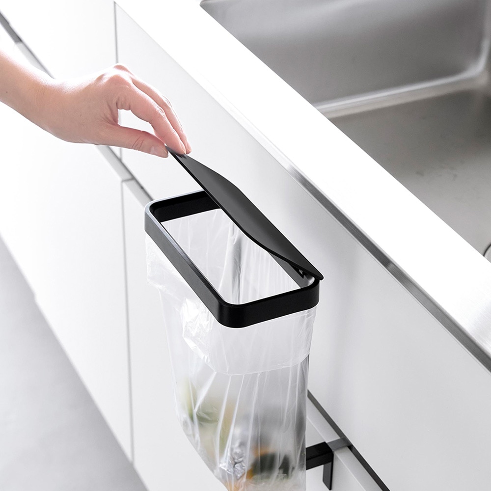 キッチンのシンク下扉に簡単に設置できる、高さ21cmのポリ袋ホルダーです。