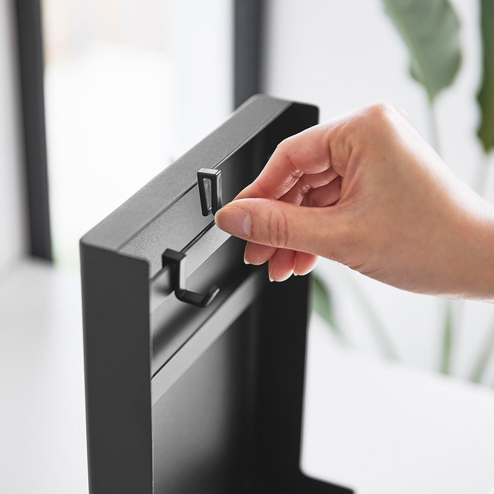使わないときはクルッと回してサッと目隠しできる、キーフックスタンドです。