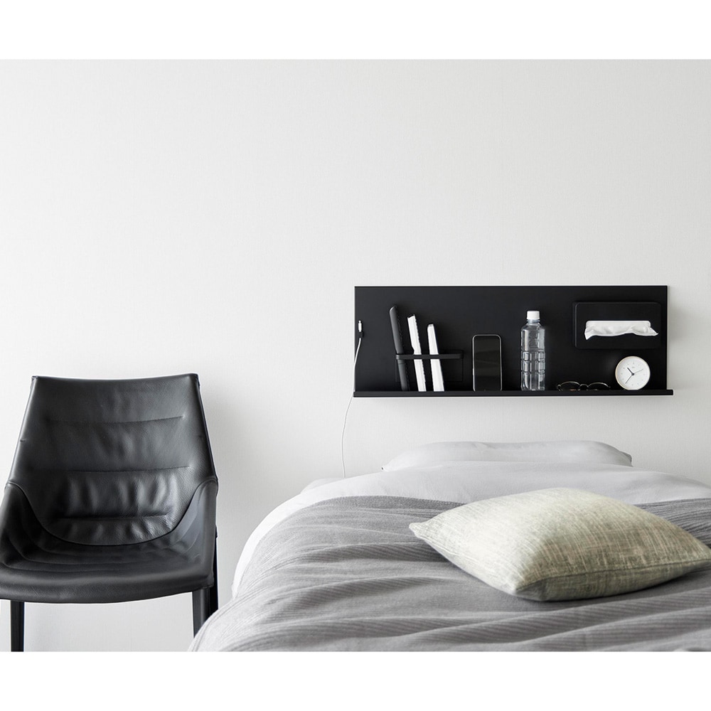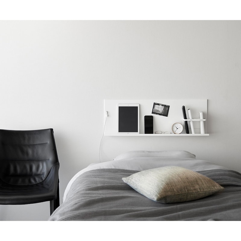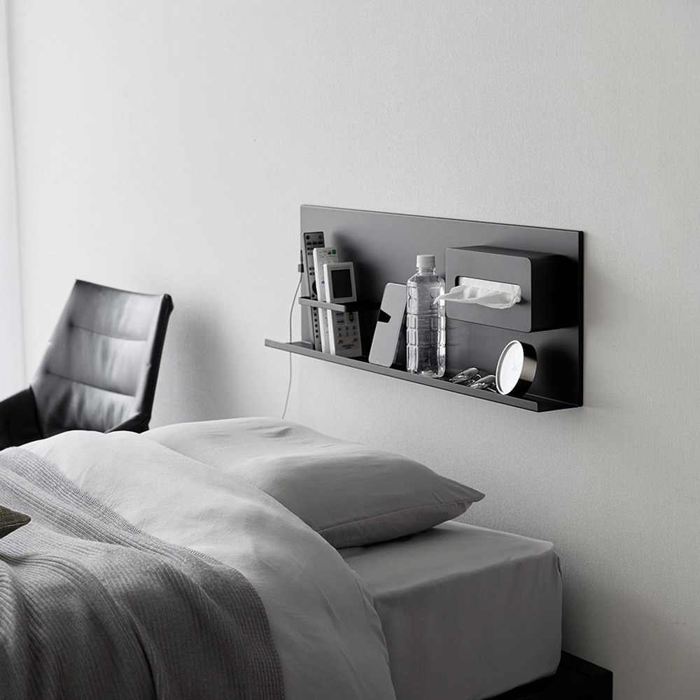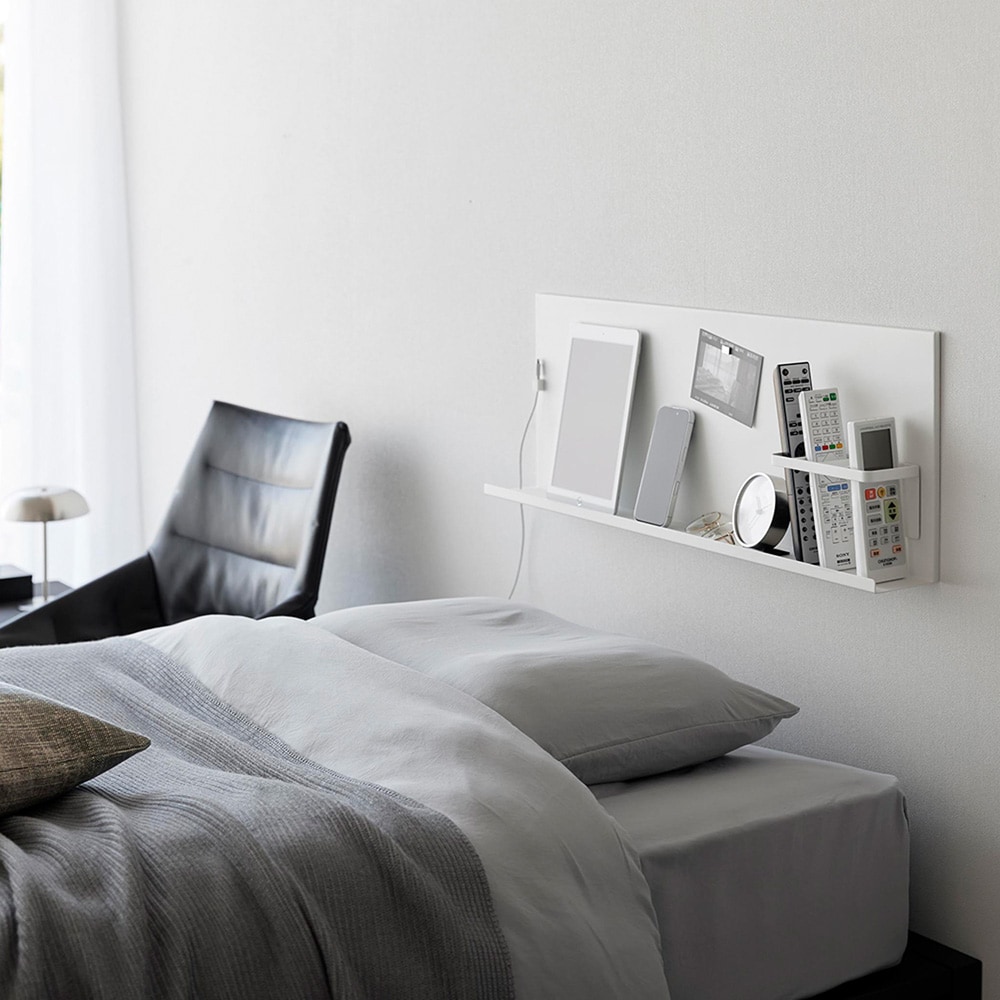 ●ヘッドボードやサイドボードとしても便利に使え、リモコンやタブレットPCなどの小物を手の届く場所にスッキリ収納できます。