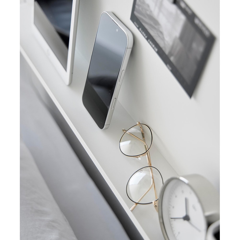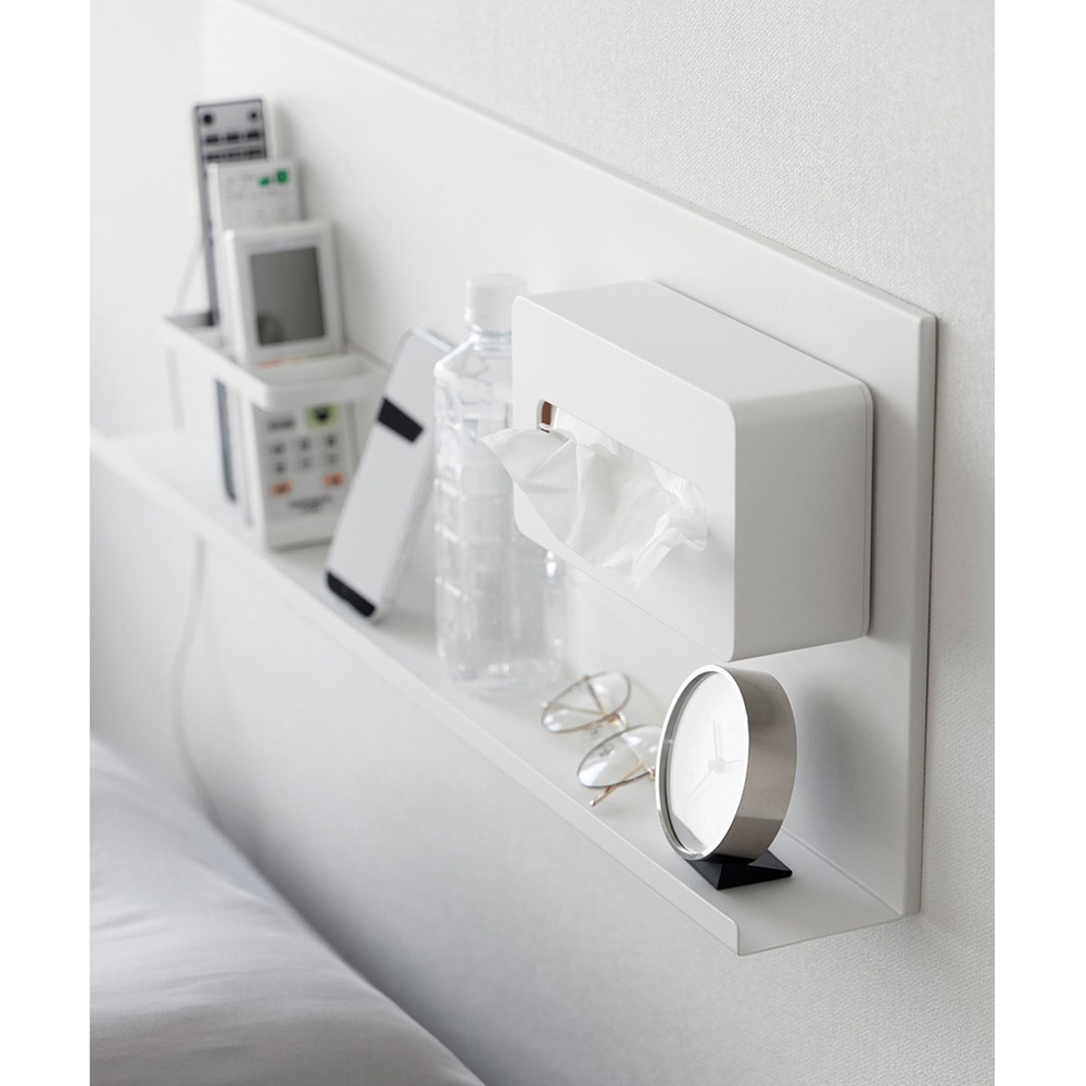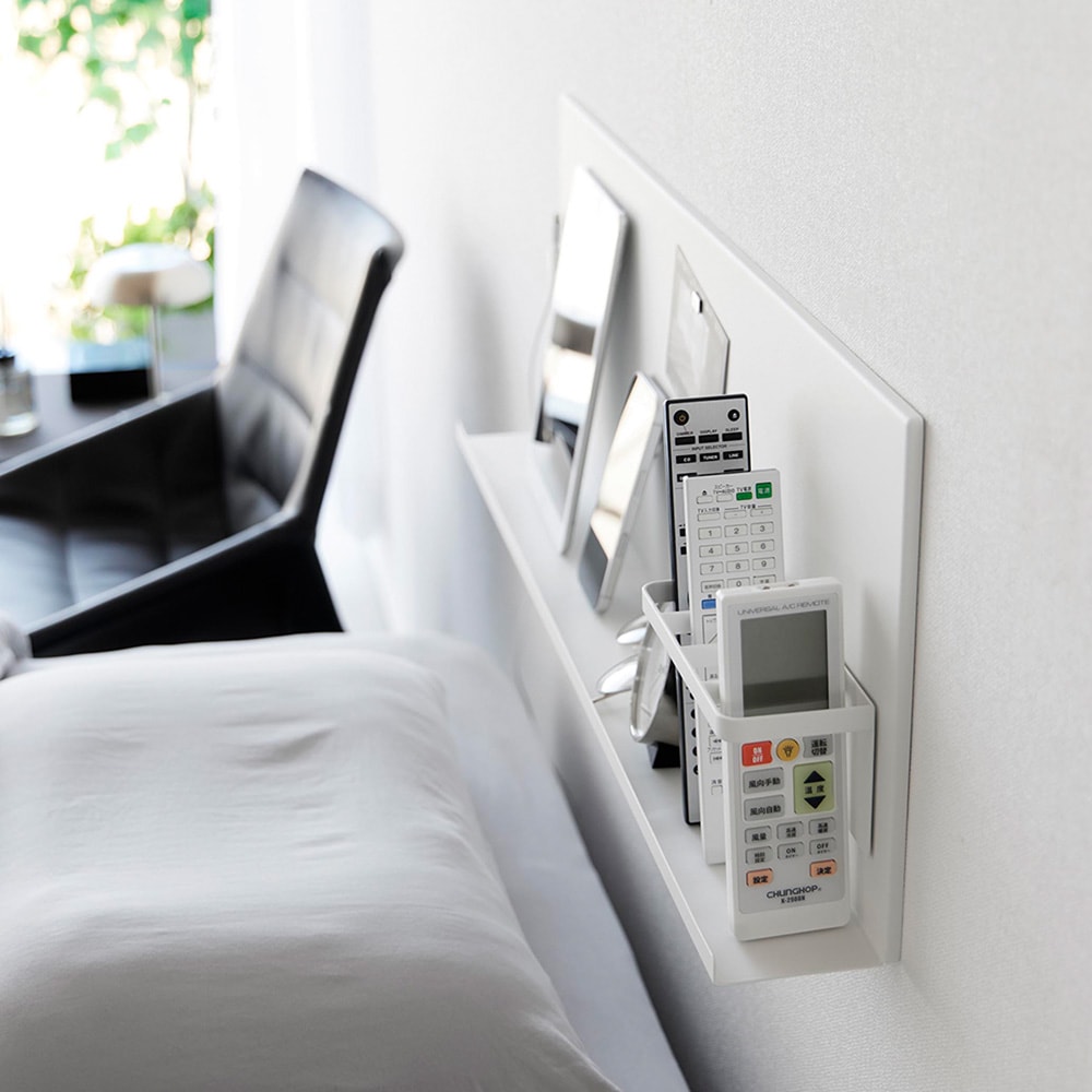 ●ヘッドボードやサイドボードとしても便利に使え、リモコンやタブレットPCなどの小物を手の届く場所にスッキリ収納できます。