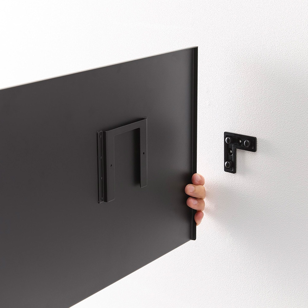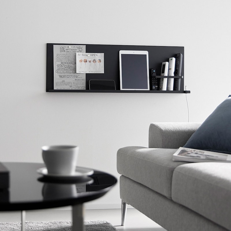 石こうボードピンで簡単に取り付けられる、リモコンホルダー付きスチールパネルです。
